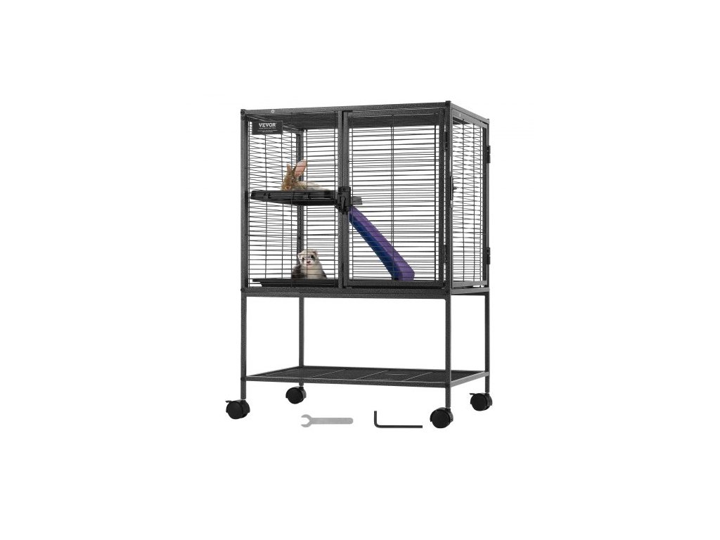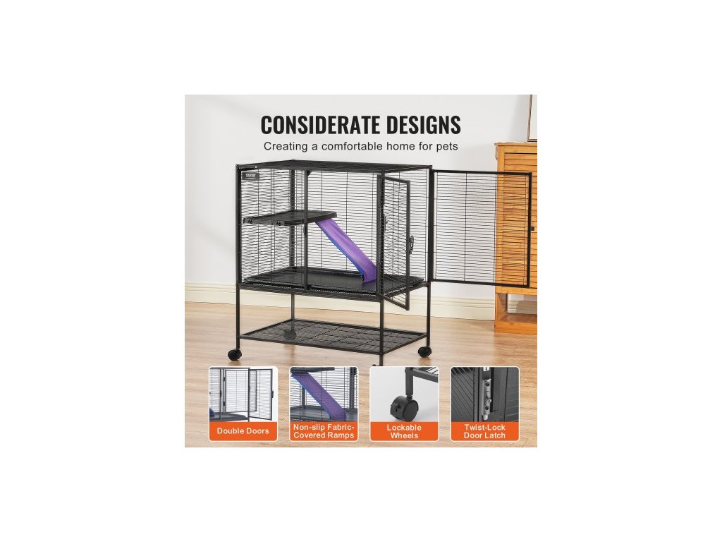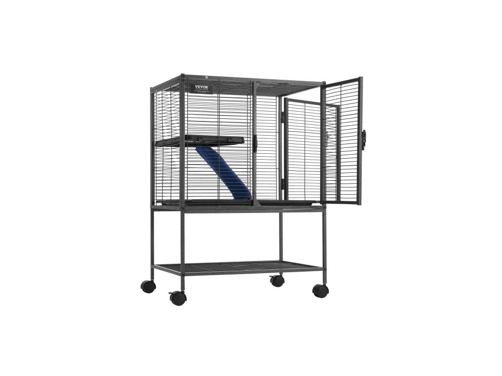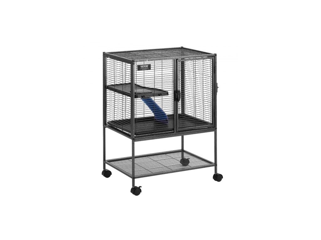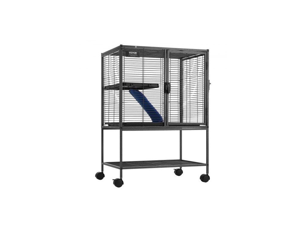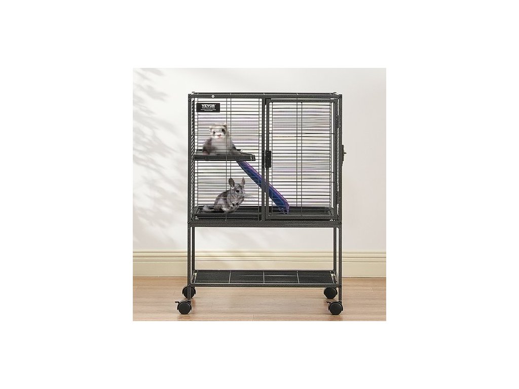Kovová klec pro fretky 34" s rolovacím mechanismem, velká dvoupatrová klec Critter Nation, klec pro malá zvířata s rampami a miskou, snadno sestavitelná pro krysy, křečky, morčata, činčily, veverky, ježky a králíkyProstorný prostor