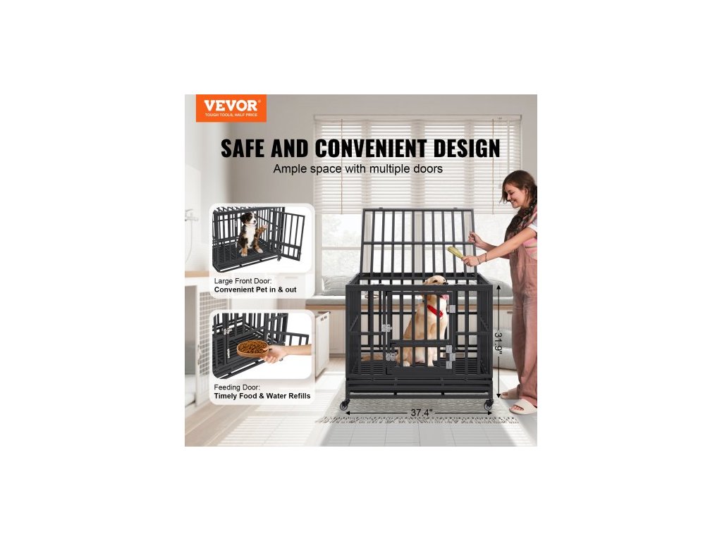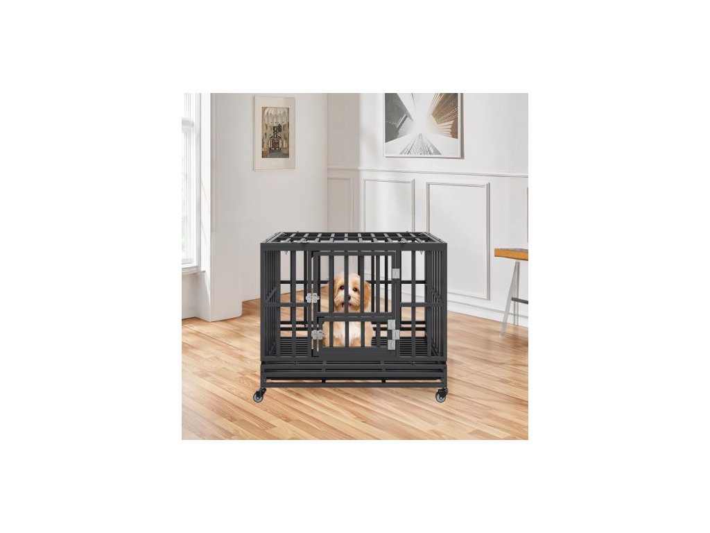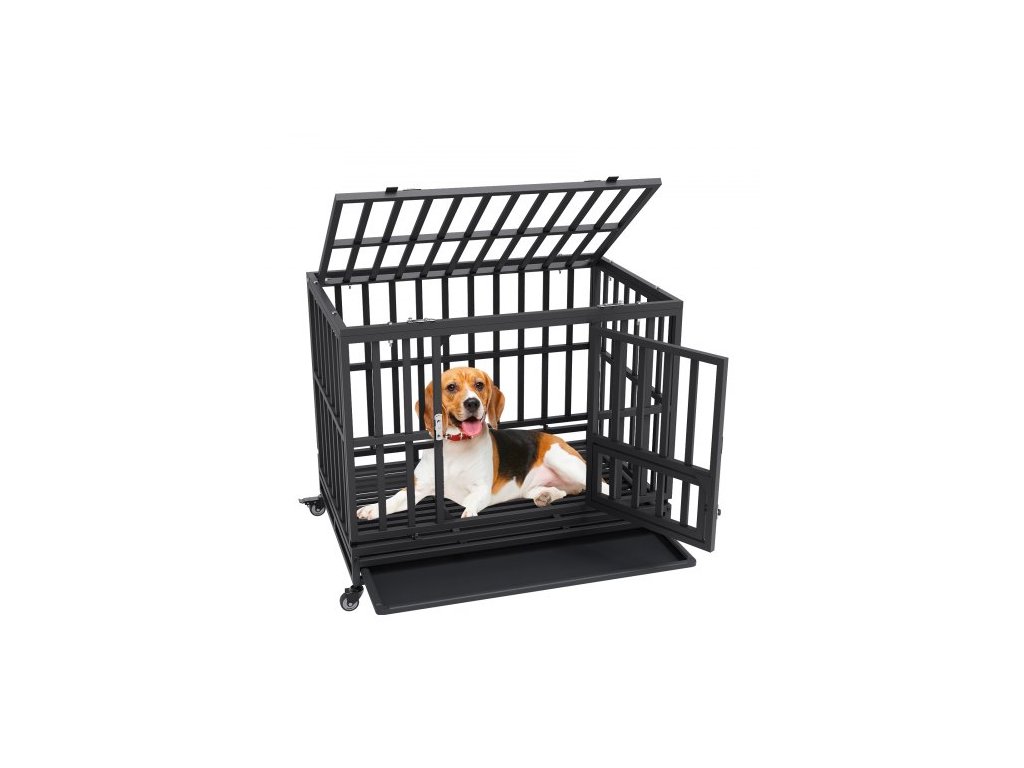 38palcová odolná psí klece, nezničitelná psí klece, 3dveřová odolná psí klece pro střední až velké psy s uzamykatelnými kolečky a odnímatelným podnosem, psí klece s vysokou úzkostí pro vnitřní i venkovní použití