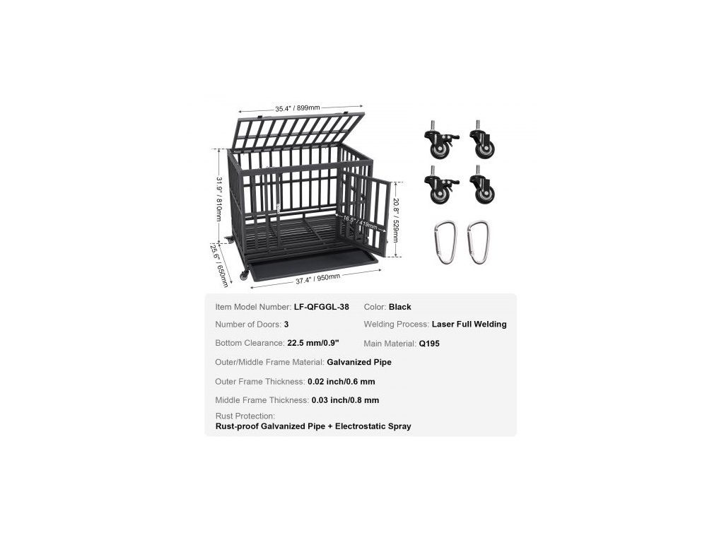 Barva: Černá,Proces svařování: Celoplošné laserové svařování,Číslo modelu položky: LF-QFGGL-38,Počet dveří: Tři,Tloušťka středního rámu: 0,03 palce/0,8 mm,Tloušťka vnějšího rámu: 0,02 palce/0,6 mm,Spodní světlá výška: 22,5 mm/0,9",Ochrana proti korozi: Nerezová pozinkovaná trubka + elektrostatický nástřik,Hlavní materiál: Q195,Rozměry výrobku: 37,4 × 25,6 × 31,9 palce/950 × 650 × 810 mm, materiál vnějšího/středního rámu: pozinkovaná trubka
