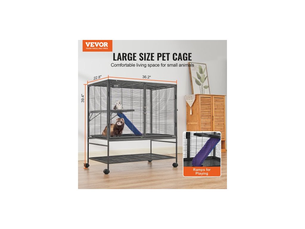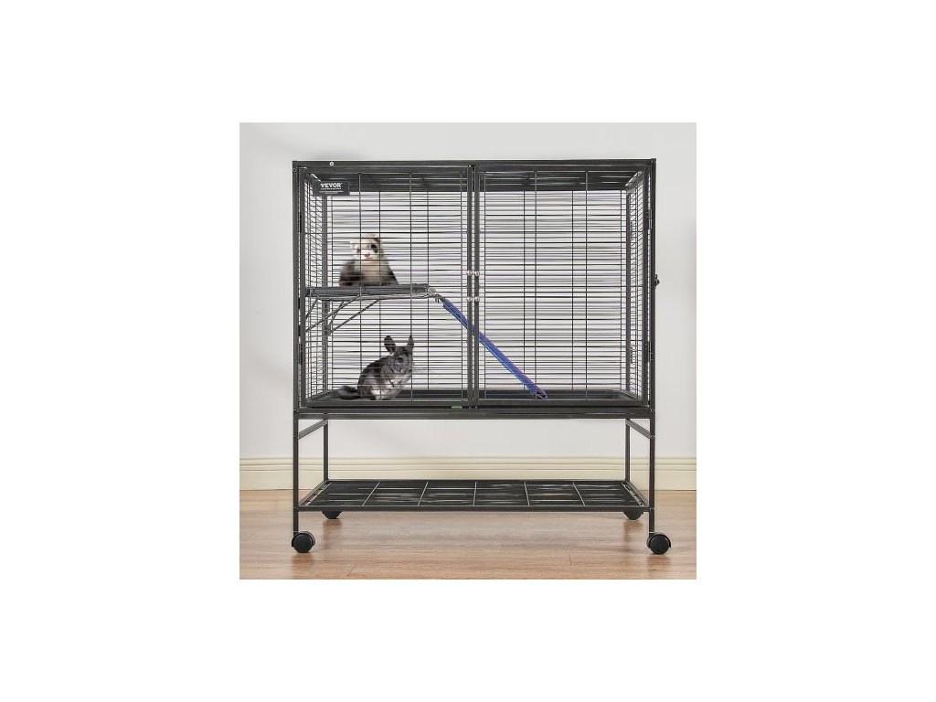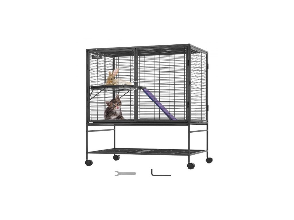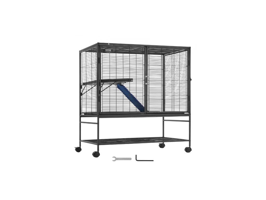 Kovová klec pro fretky 39" s rolovacím mechanismem, velká dvoupatrová klec Critter Nation, klec pro malá zvířata s rampami a miskou, snadno sestavitelná pro krysy, křečky, morčata, činčily, veverky, ježky a králíkyProstorný prostor