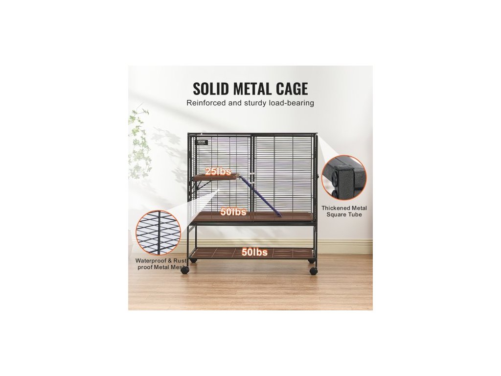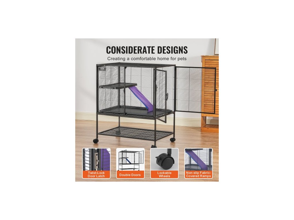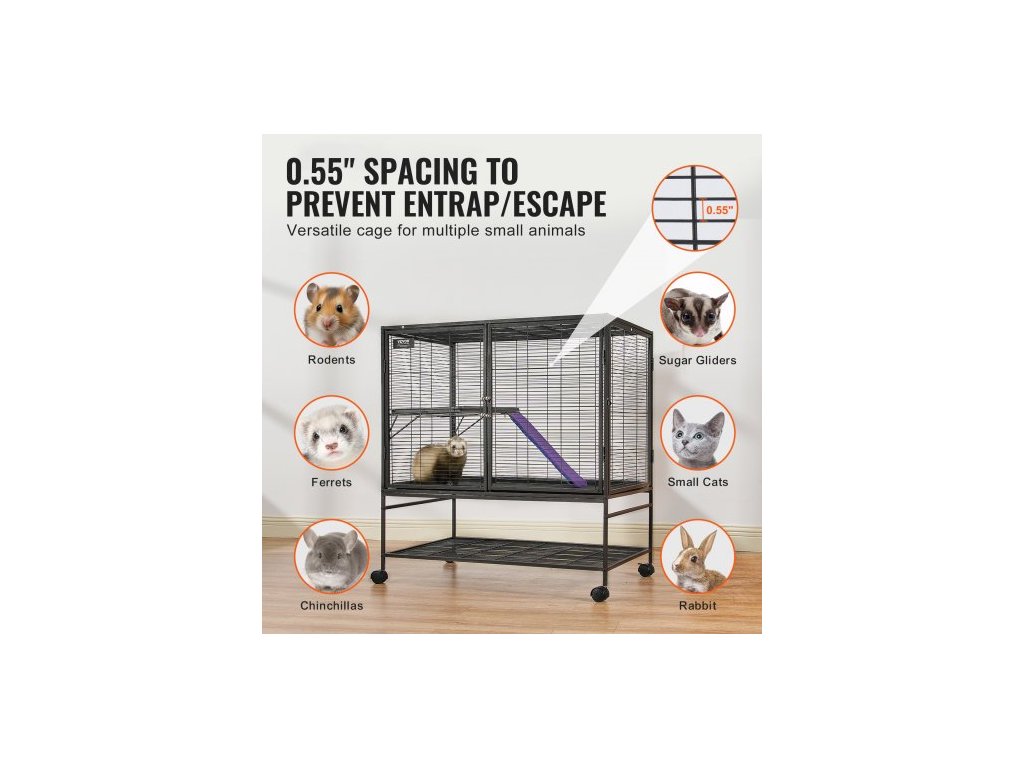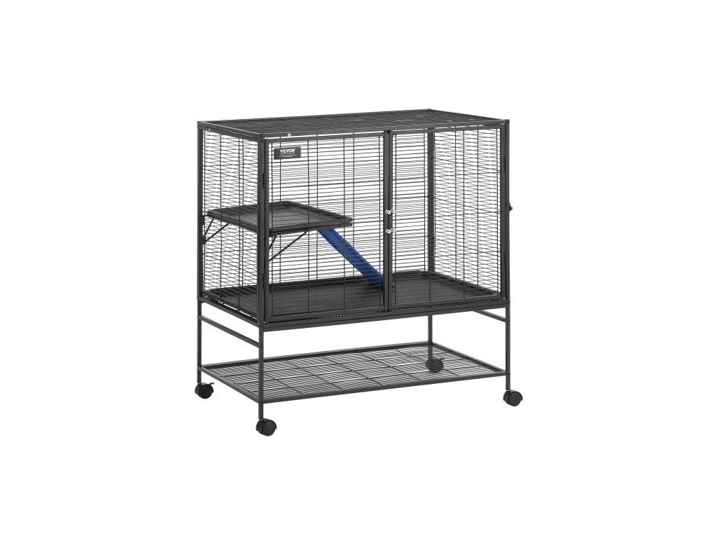 Kovová klec pro fretky 39" s rolovacím mechanismem, velká dvoupatrová klec Critter Nation, klec pro malá zvířata s rampami a miskou, snadno sestavitelná pro krysy, křečky, morčata, činčily, veverky, ježky a králíkyProstorný prostor