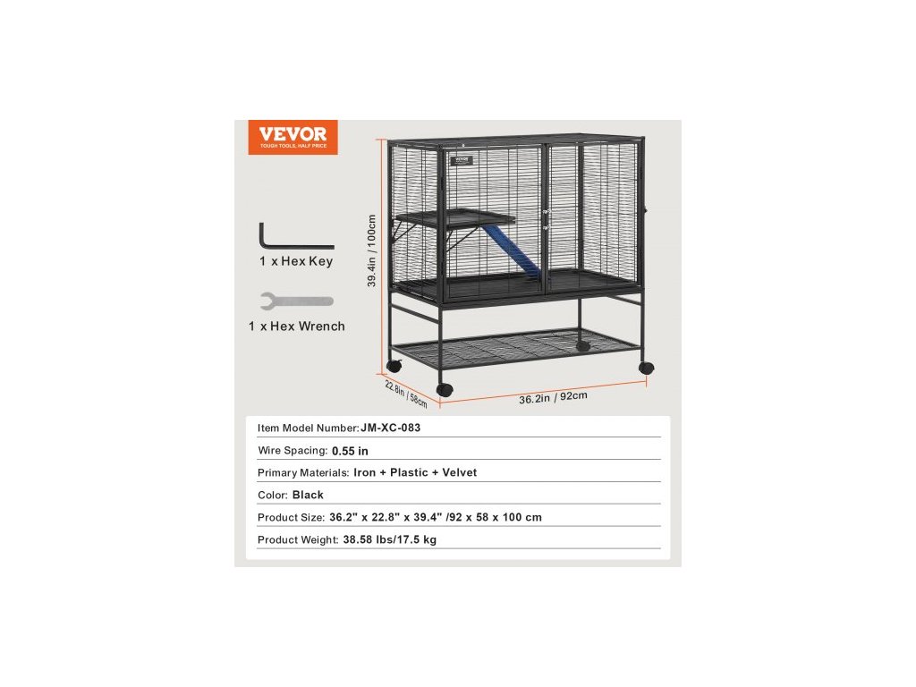 Základní materiály: Železo + plast + samet,Rozteč drátů: 1/2 palce,Barva: Černá,Číslo modelu položky: JM-XC-083,Hmotnost výrobku: 38,58 lbs/17,5 kg,Rozměry výrobku: 36,2"x22,8"x39,4"/920x580x1000 mm