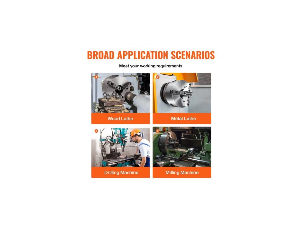 3čelisťové soustružnické sklíčidlo , 10'', samostředící soustružnické sklíčidlo, upínací rozsah 0,24-9,84 palce/6-250 mm s upevňovacími šrouby s T-klíčem, šestihranný klíč, pro soustruh, 3D tiskárnu, obráběcí centrum, frézku, vrtačkuVýjimečná odolnost