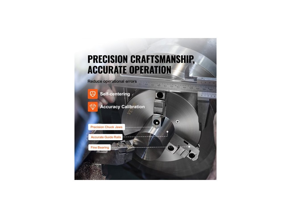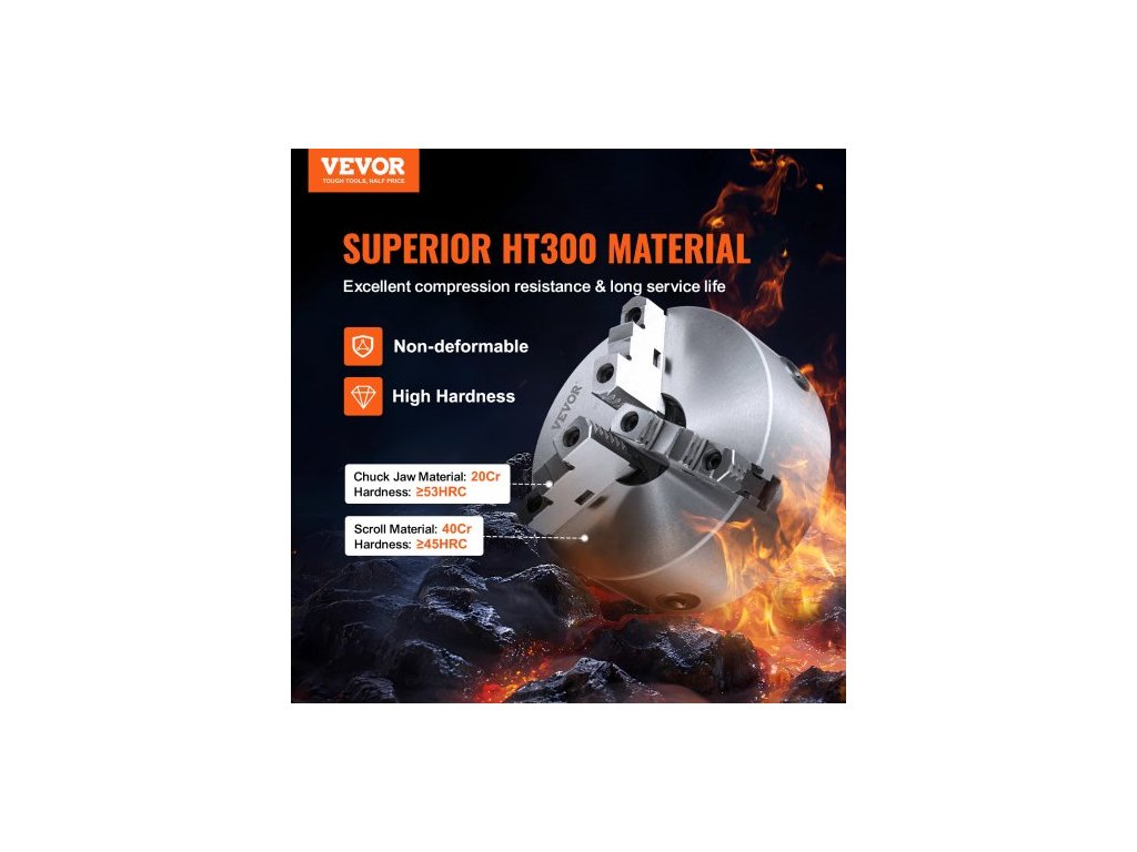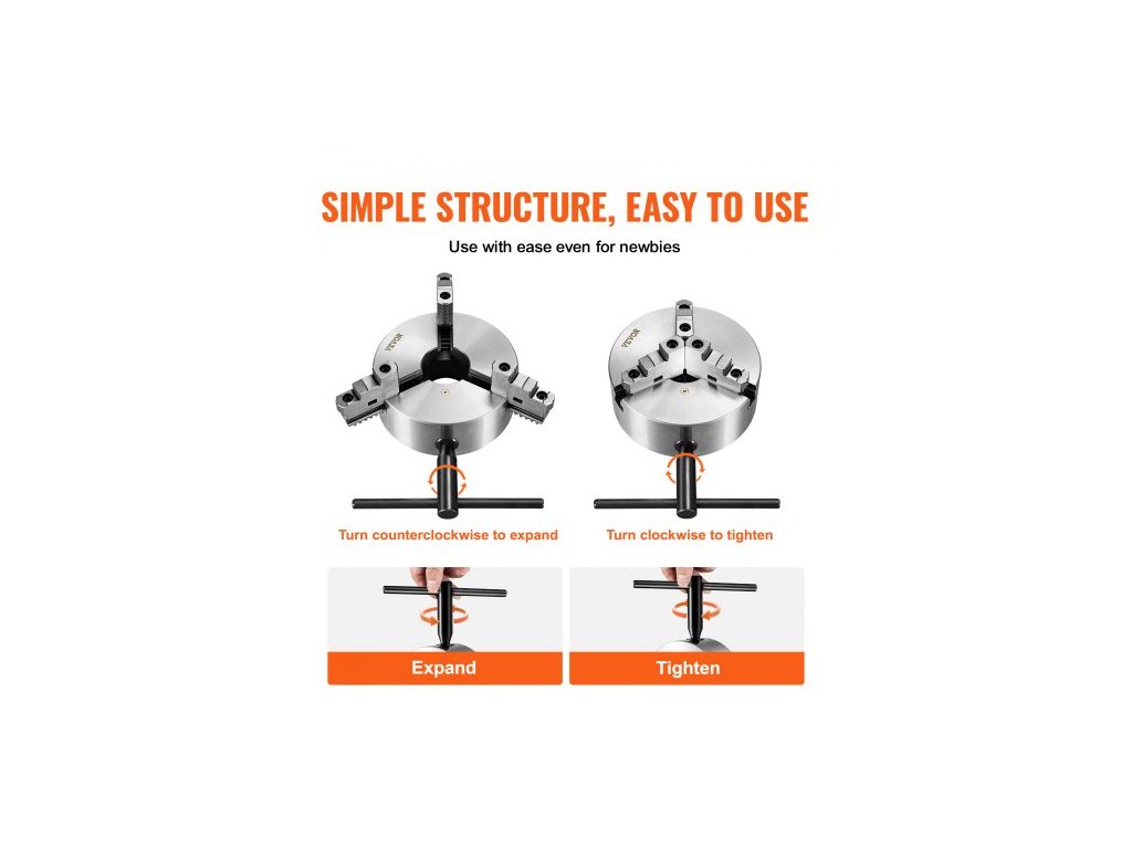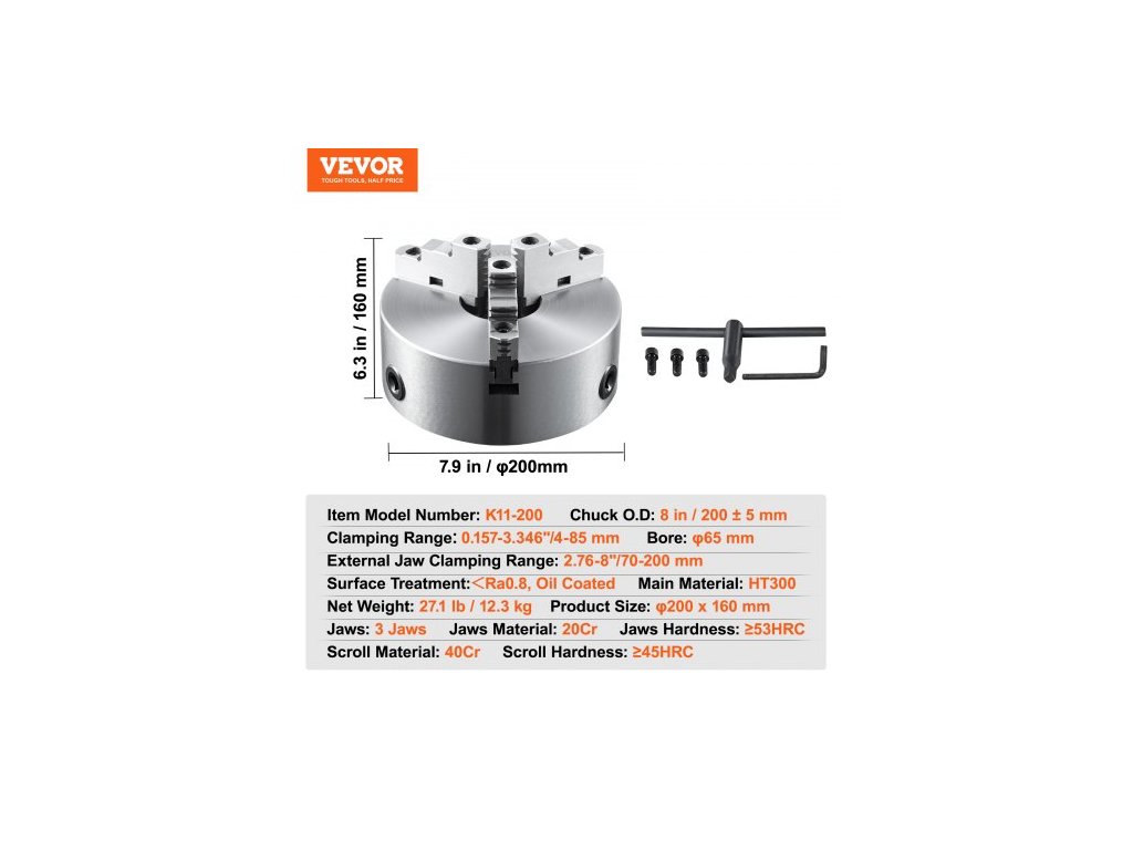 3čelisťové soustružnické sklíčidlo , 8'', samostředící soustružnické sklíčidlo, upínací rozsah 0,16-8 palce/4-200 mm s upevňovacími šrouby s T-klíčem, šestihranný klíč, pro soustruh, 3D tiskárnu, obráběcí centrum, frézku a vrtačkuVýjimečná odolnost