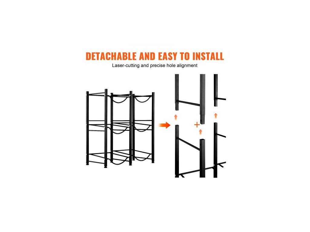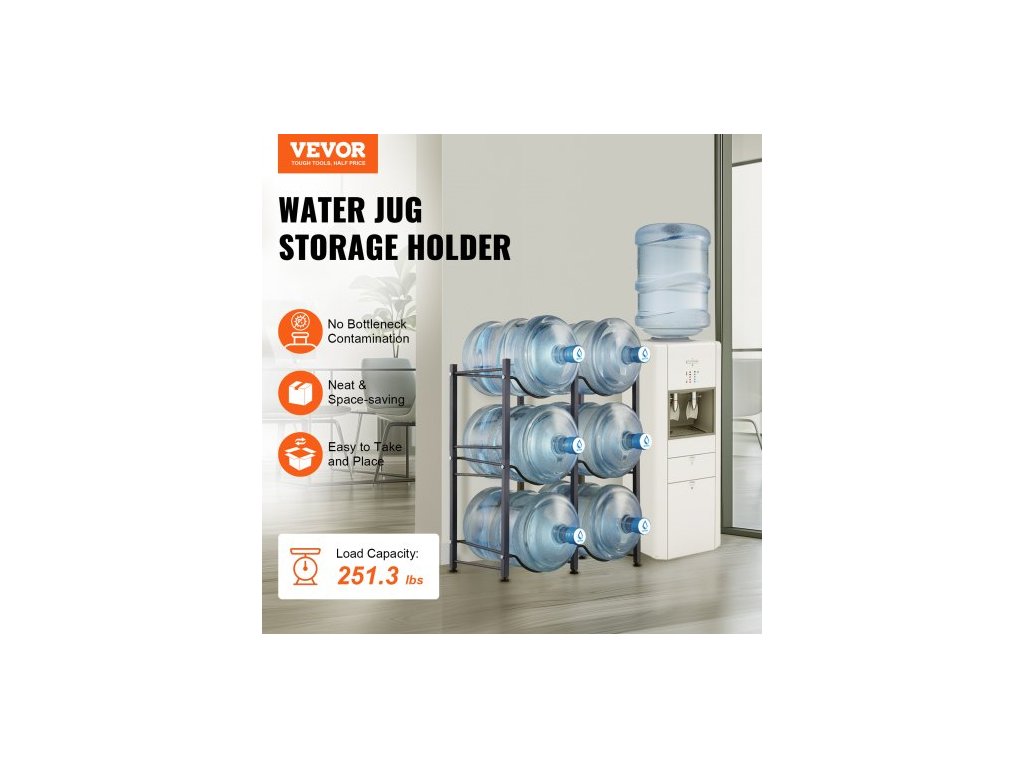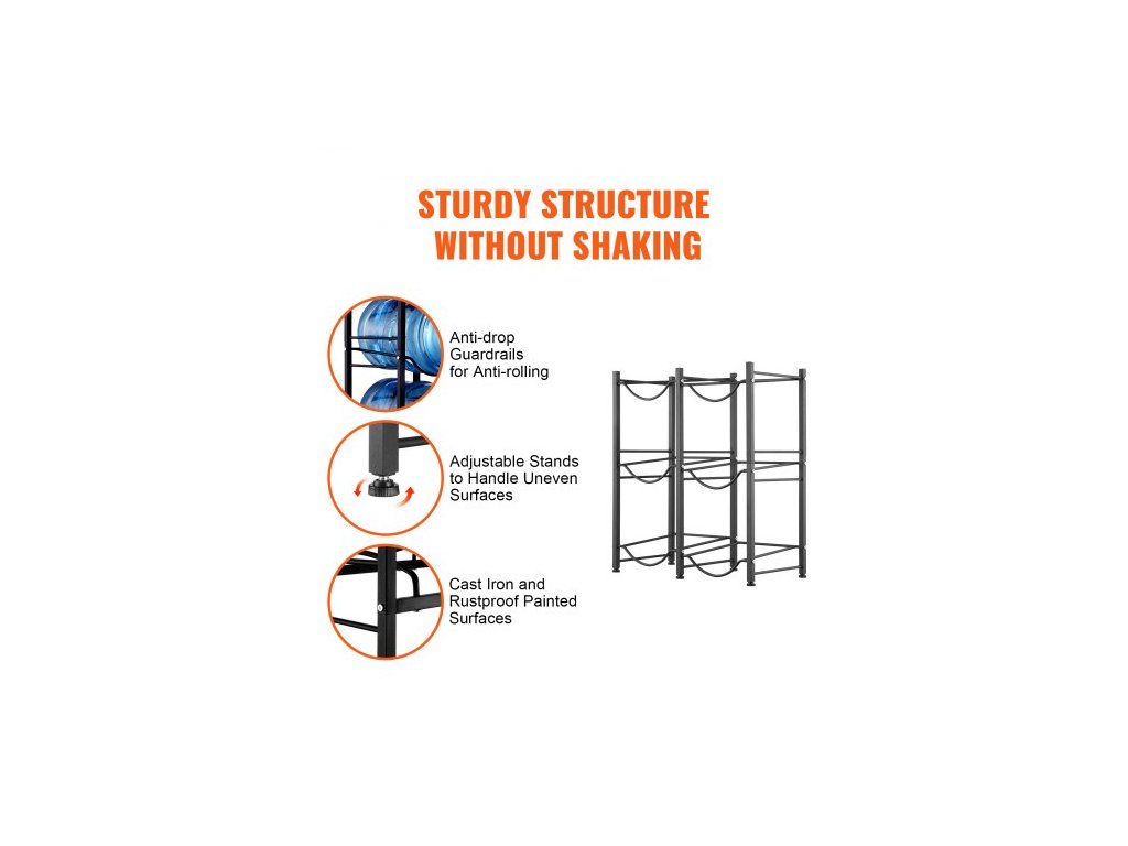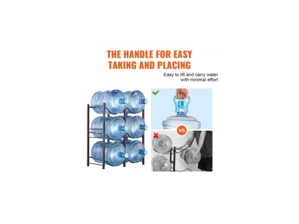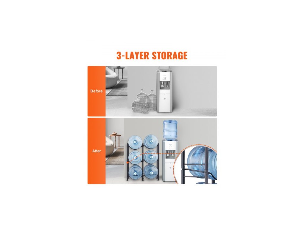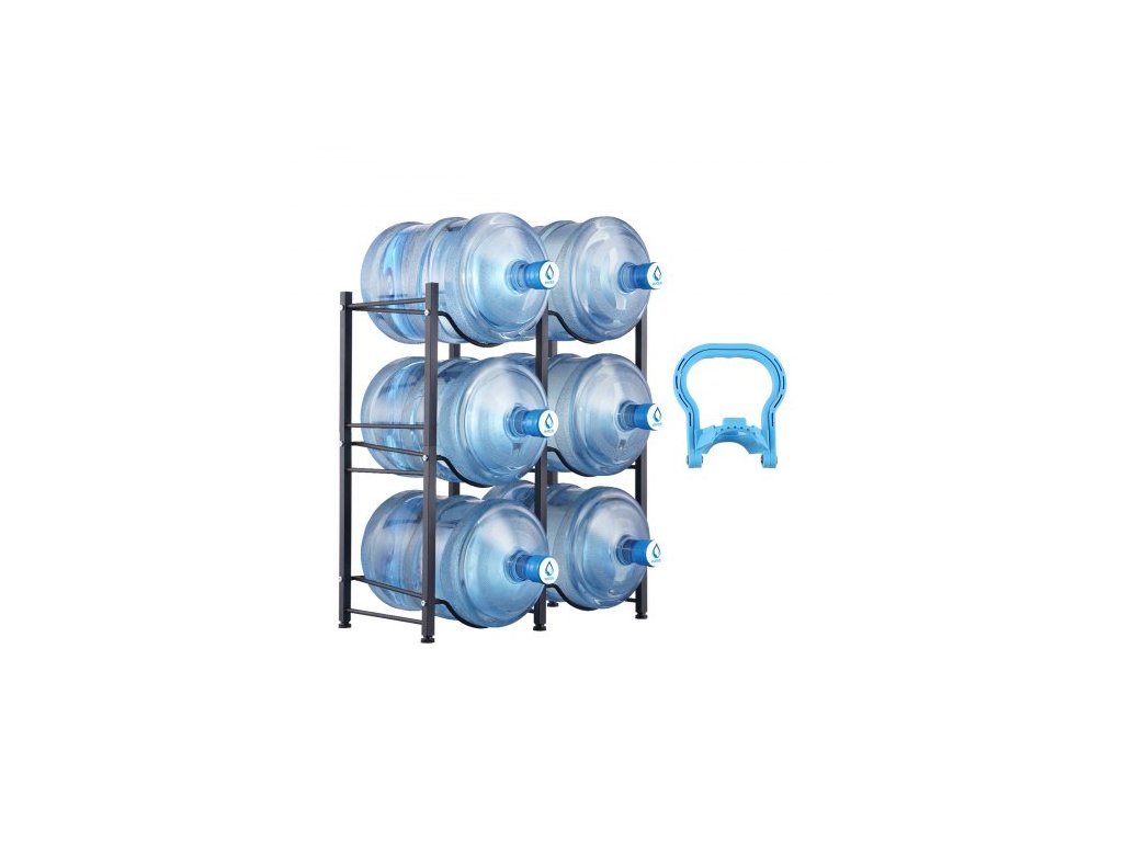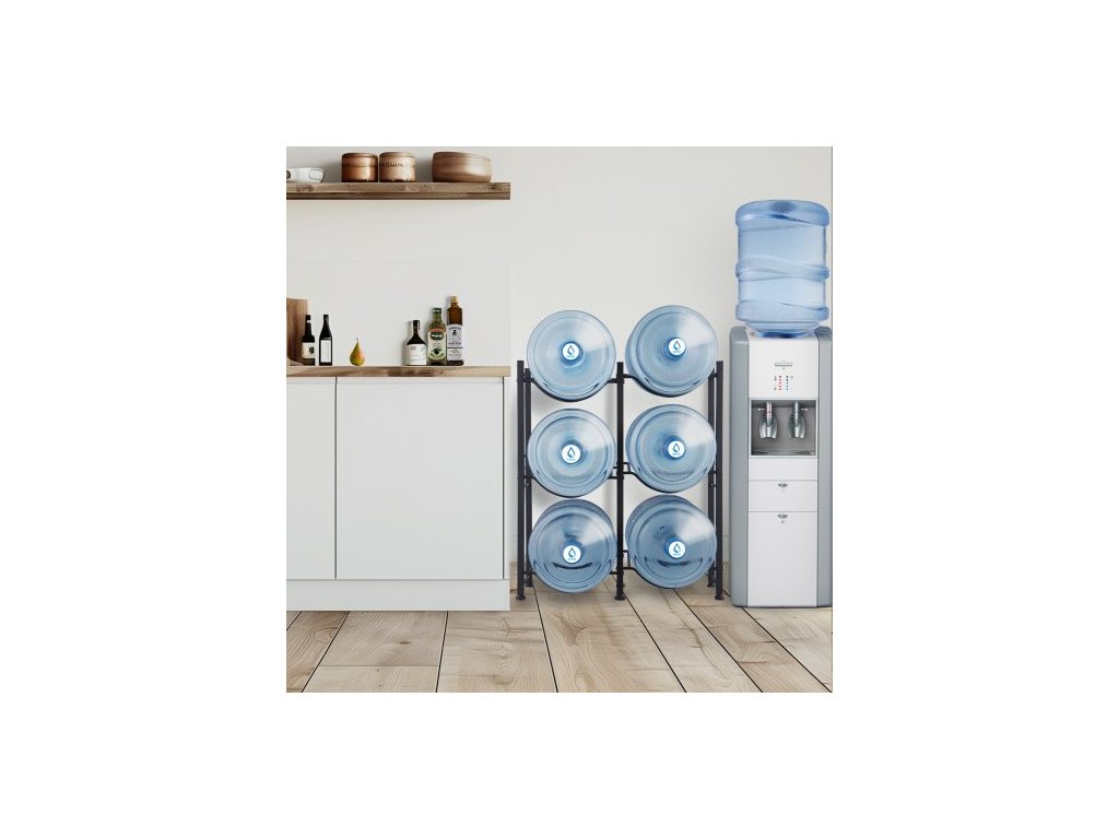 Držák na lahve na vodu se 3 úrovněmi, držák na lahve na vodu o objemu 5 galonů, dvouřadý stojan na lahve na vodu pro 6 lahví, odolný stojan na lahve do kuchyně, kanceláře, obývacího pokoje, černýStojan na lahve na vodu