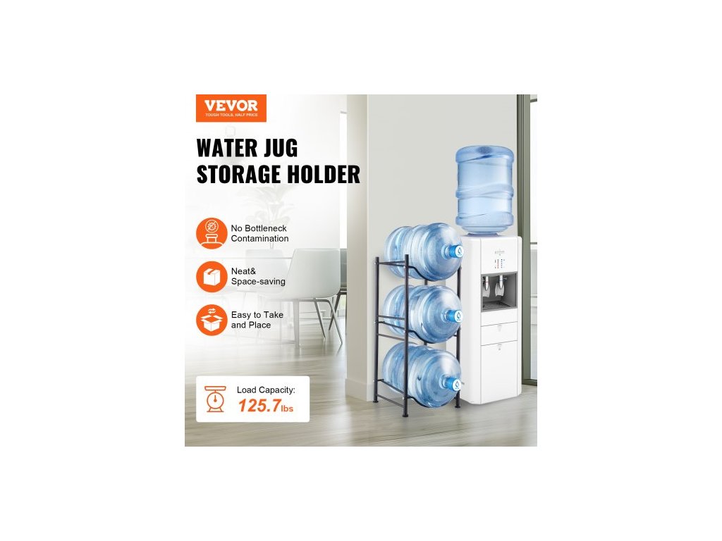 3patrový držák na džbány na vodu, držák na 5galonové lahve s vodou, jednořadý stojan na 3 lahve s vodou, odolný stojan na džbány s vodou do kuchyně, kanceláře, obývacího pokoje, černý