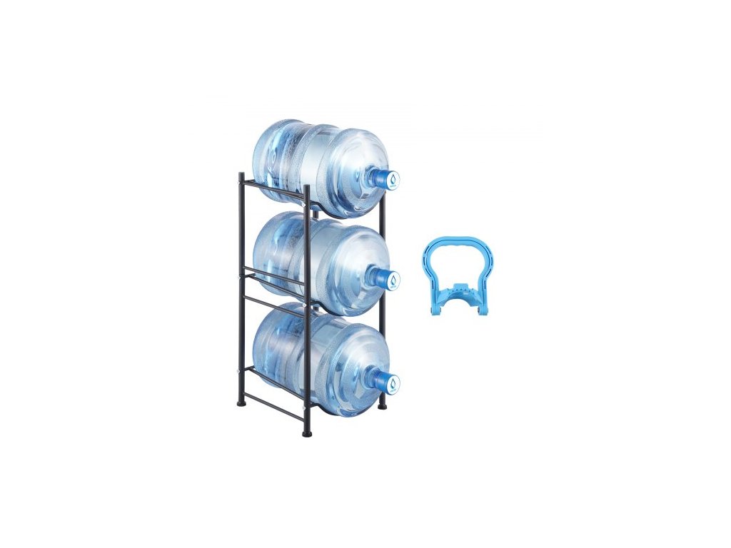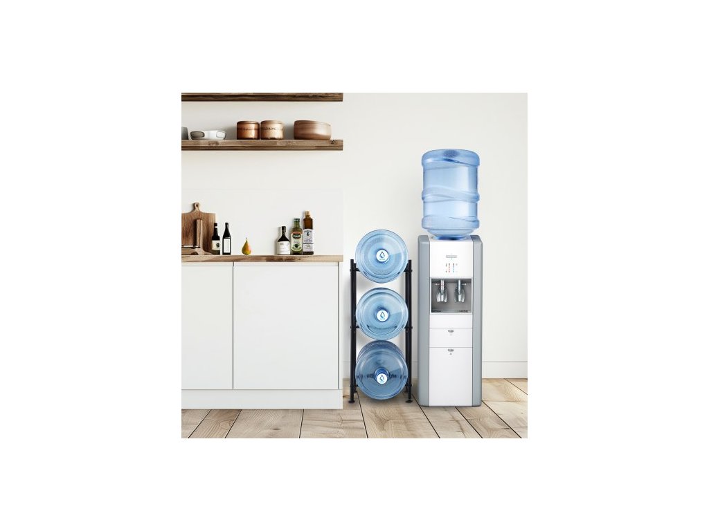 Držák na lahve na vodu se 3 úrovněmi, držák na lahve na vodu o objemu 5 galonů, stojan na lahve na vodu v jedné řadě pro 3 lahve, odolný stojan na lahve do kuchyně, kanceláře, obývacího pokoje, černýStojan na lahve na vodu