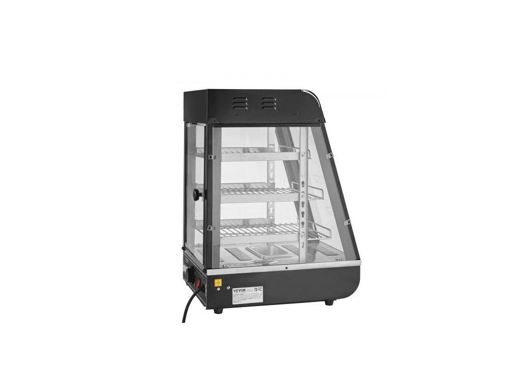 3patrový komerční ohřívač jídla, 1000W ohřívač jídla s osvětlením, nastavitelná police a displej teploty, ohřev párou 30℃~85℃, 57L na hamburgery, pizzu, chléb, smažené kuře