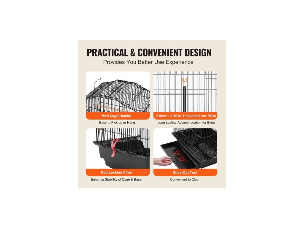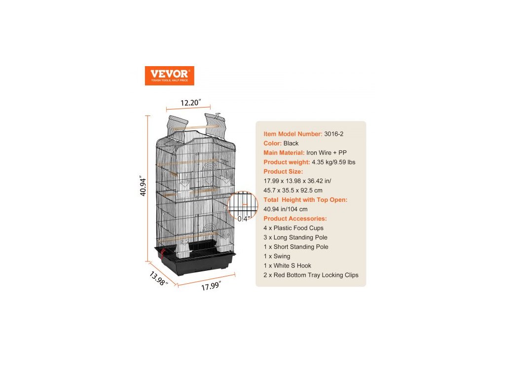 41palcová otevřená klec pro velké papoušky, závěsná klec pro andulky, pěnkavy, kanárky, hrdličky, korely, malé kvakery, cestovní klec pro domácí mazlíčky s houpačkou a bidýlkemPohodlné prostředí