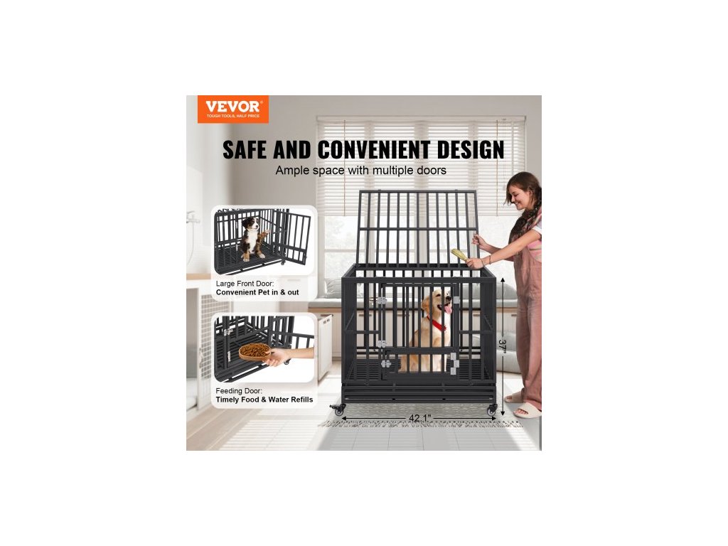 42palcová odolná psí klece, nezničitelná psí klece, 3dveřová odolná psí klece pro střední až velké psy s uzamykatelnými kolečky a odnímatelným podnosem, vysoce úzkostná psí klece pro vnitřní i venkovní použitíPrémiová pozinkovaná ocel