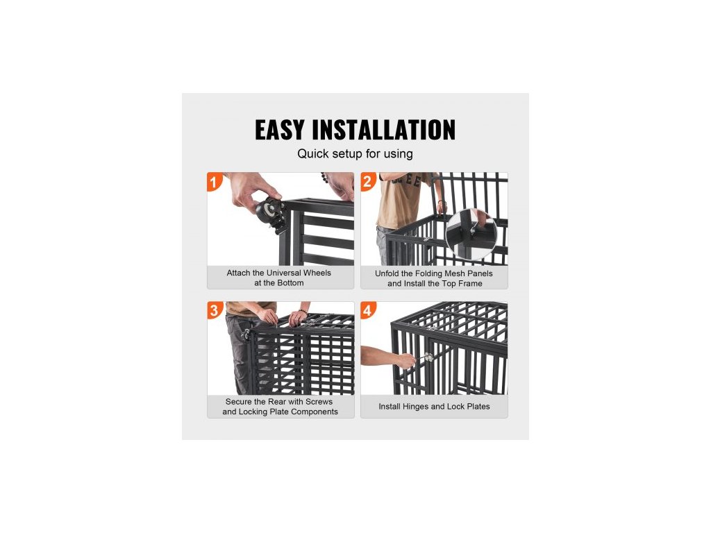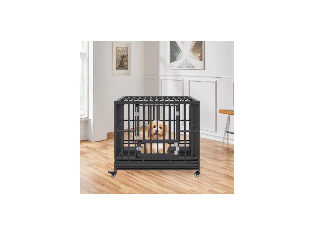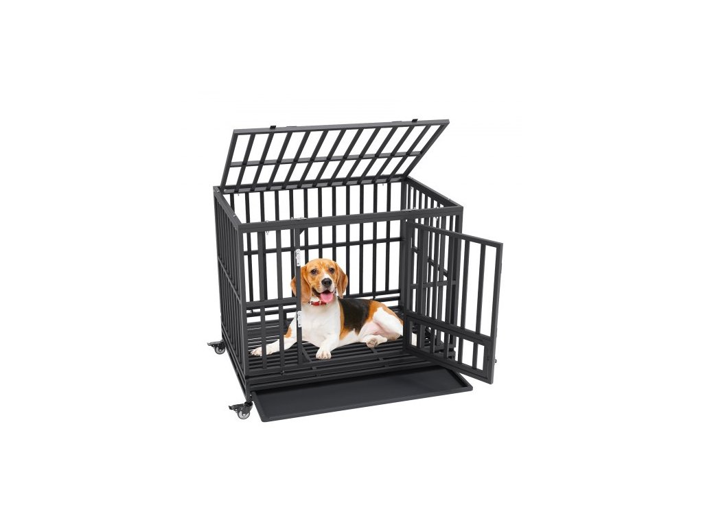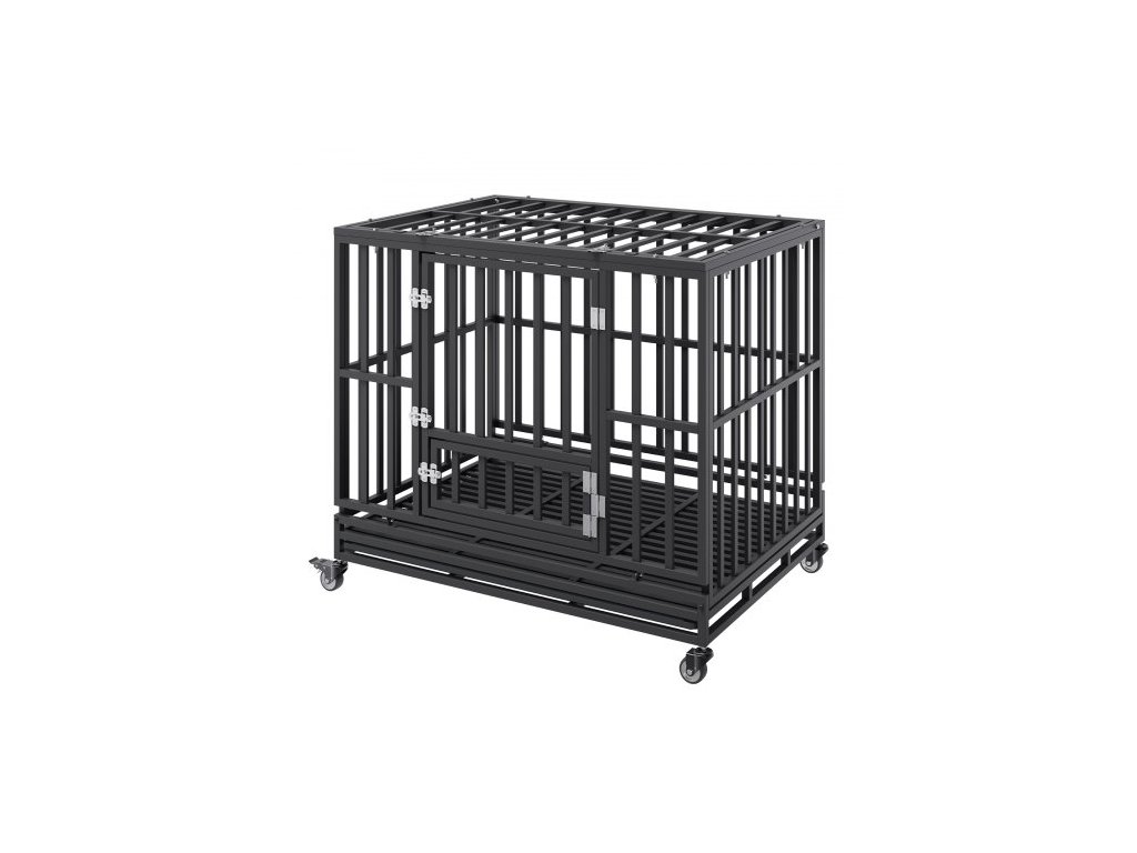 42palcová odolná psí klece, nezničitelná psí klece, 3dveřová odolná psí klece pro střední až velké psy s uzamykatelnými kolečky a odnímatelným podnosem, psí klece s vysokou úzkostí pro vnitřní i venkovní použití