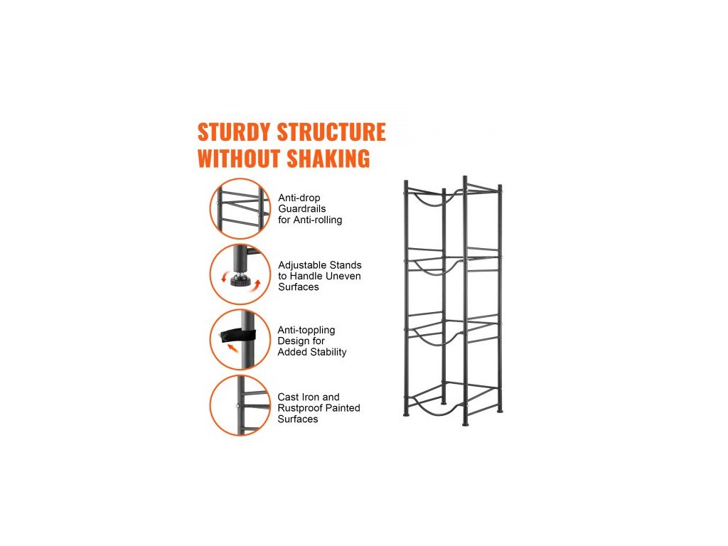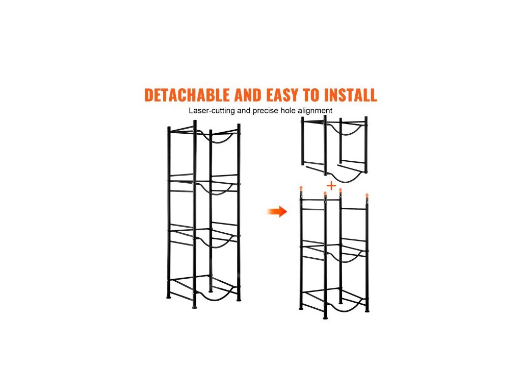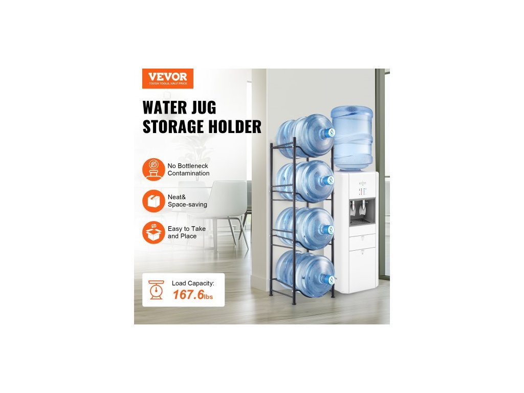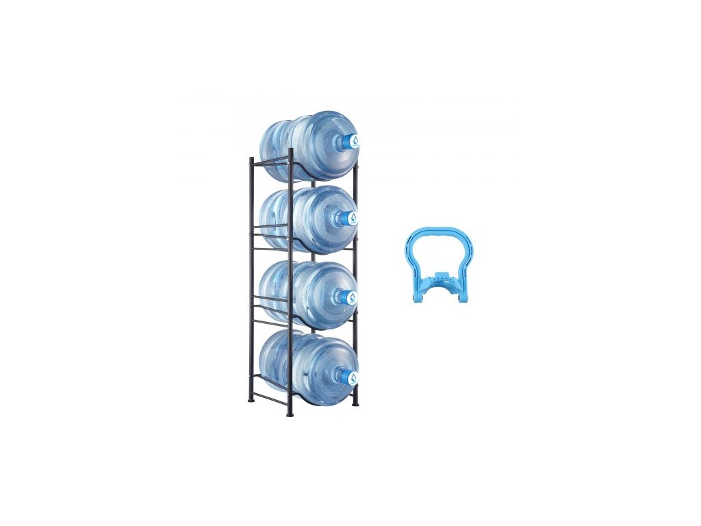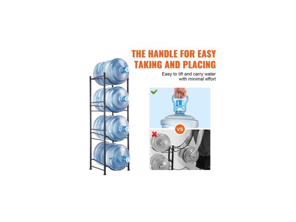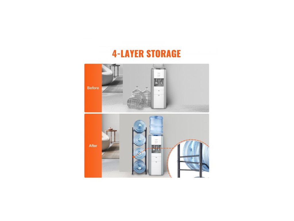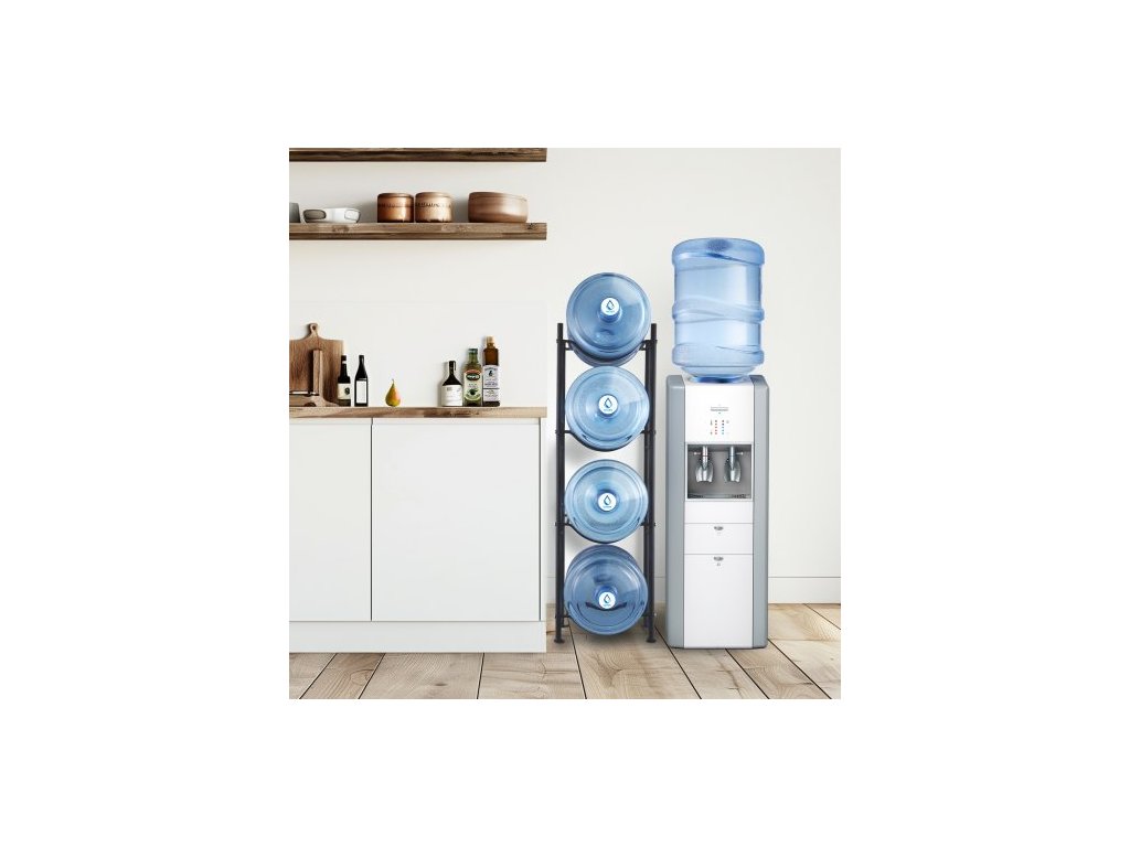 Držák na lahve na vodu se 4 úrovněmi, držák na lahve na vodu o objemu 5 galonů, stojan na lahve na vodu v jedné řadě pro 4 lahve, odolný stojan na lahve do kuchyně, kanceláře, obývacího pokoje, černýStojan na lahve na vodu