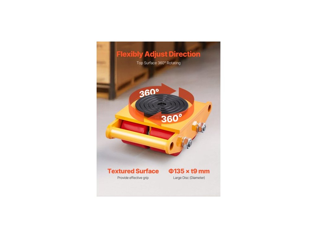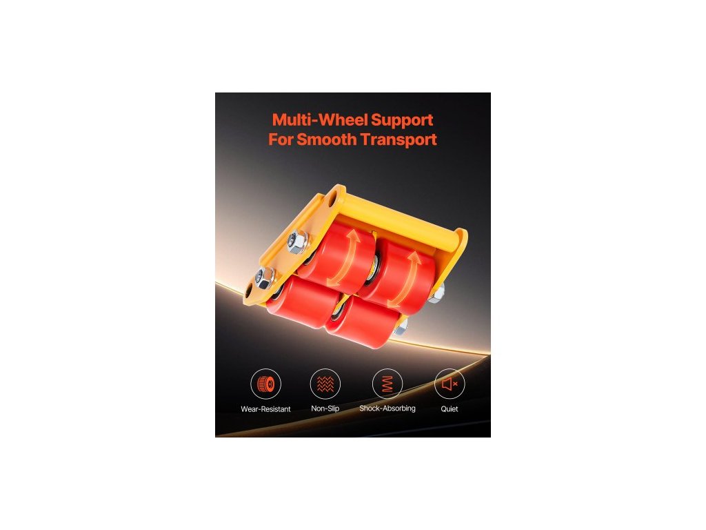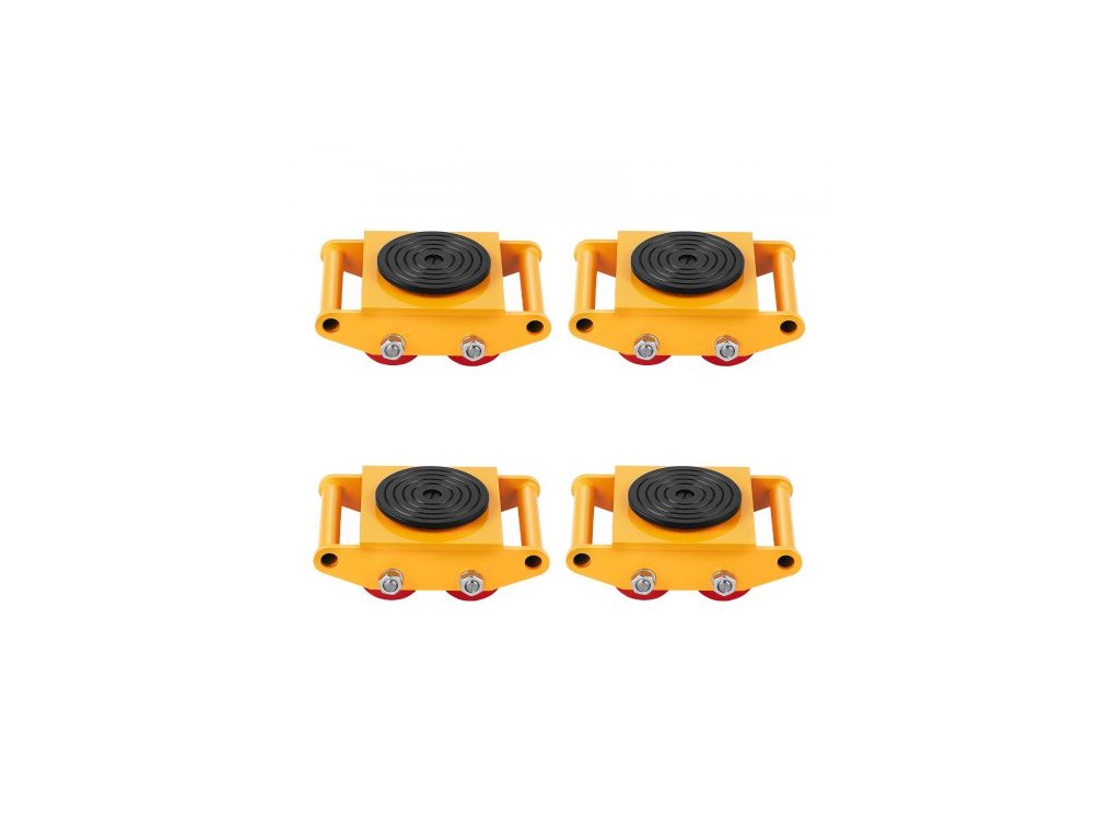 4dílná pojízdná plošina na stroje, 17637LBS/8T, stěhování průmyslových strojů, těžká pojízdná plošina z uhlíkové oceli se 4 PU kolečky a otočným protiskluzovým krytem o 360° pro sklady a dílnyVysoká pevnost