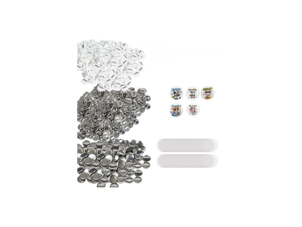 500 sad 1palcových dílů pro zadní knoflíky o průměru 25 mm, díly pro kutily na kulaté knoflíky, sada obsahuje kovový vršek, plastový/kovový knoflík, průhlednou fólii a prázdný papír na dárky, stroj NENÍ součástí dodávky500 kompletních sad