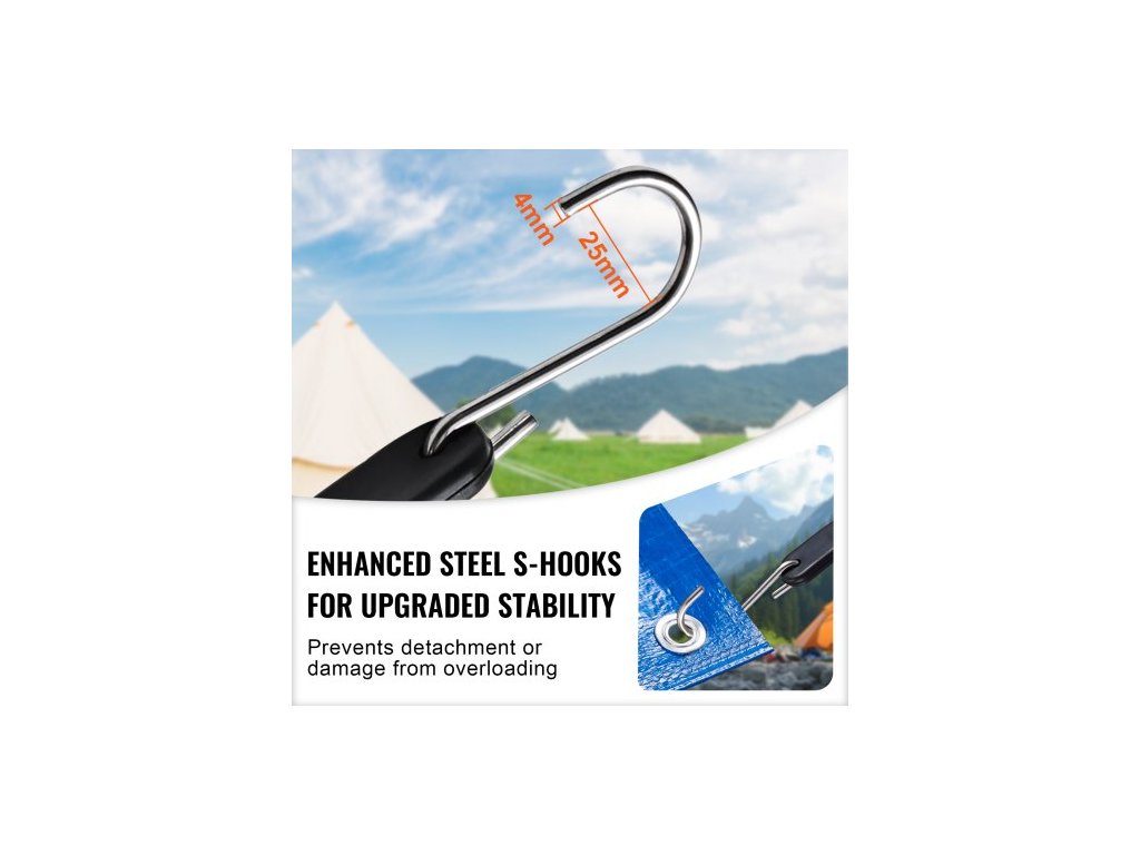 50dílná plochá bungee šňůra, 19,8 mm odolné bungee popruhy s ocelovými S-háčky, 21" elastické bungee lano pro náklad, plachty, nákladní automobily a stany, černáIdeální pružnost