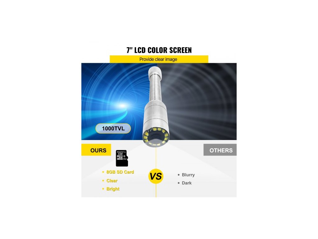 50M Kanalizační inspekční kamera 7palcový monitor LCD DVR Vodotěsný systém pro kontrolu odpadů potrubí Kamerová sada s 8G SD kartou (50M 7 palců)