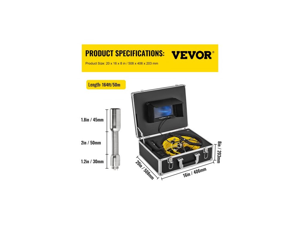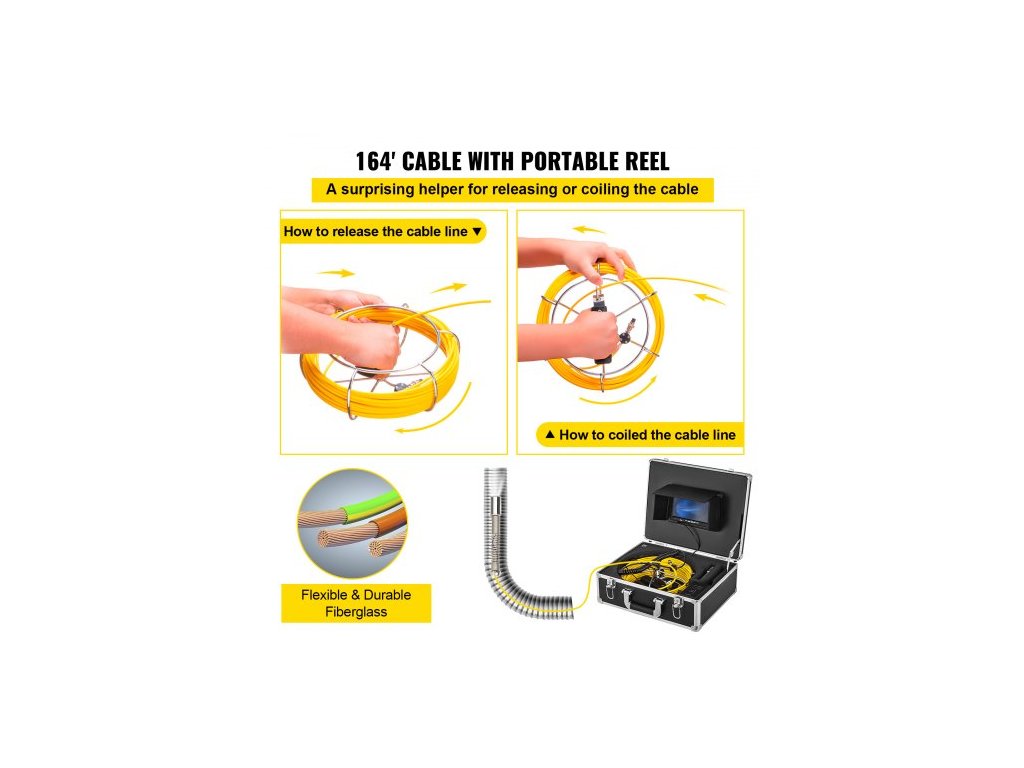 Inspekční kamera pro kanalizaci 50M, 7palcový monitor, LCD DVR, vodotěsný systém pro kontrolu odpadů potrubí, sada kamer s 8G SD kartou (50M 7 palců)7palcový HD obraz