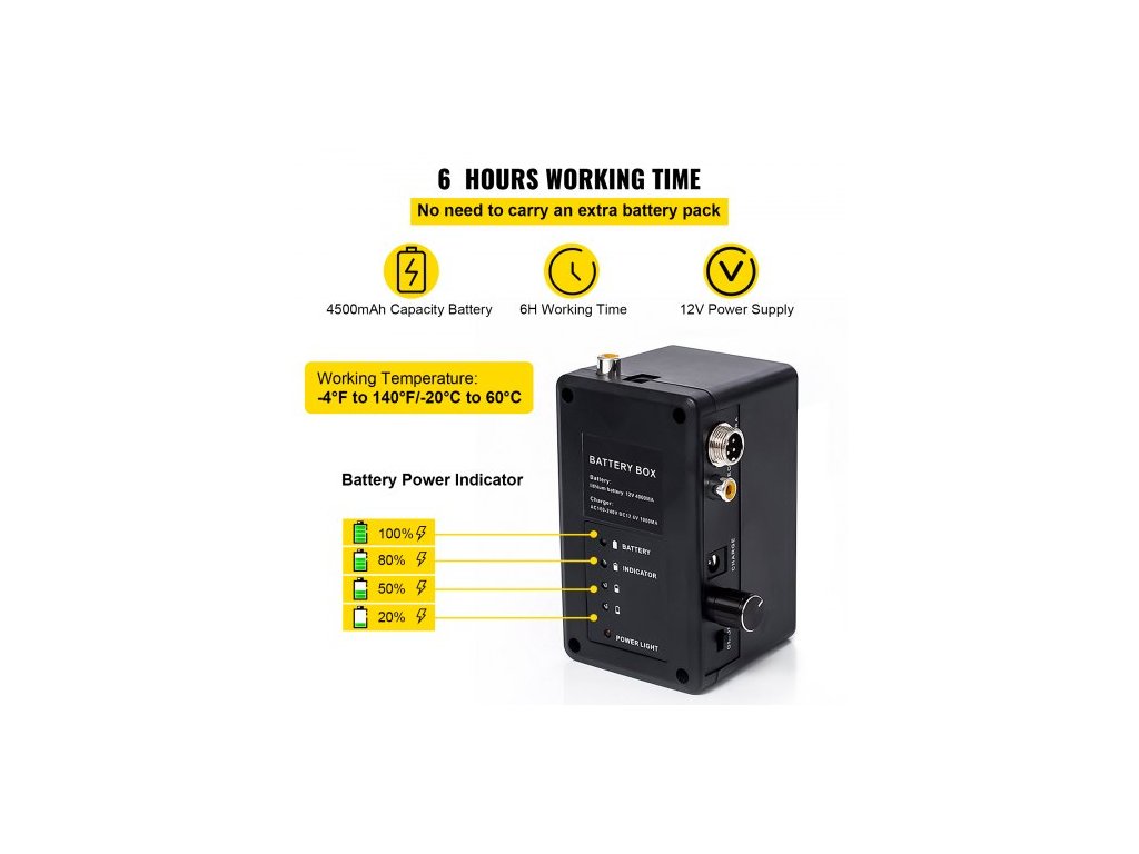 Rozměry kamery: 23 x 180 mm/0,9 x 7,1'',Úhel pohledu: 140°,Poměr stran 16:9,7" barevný monitor:,Rozměry hliníkové skříňky: 50,8 x 40,6 x 20,3 cm/20 x 16 x 8",Zdroj světla: 12 bílých LED světel,Specifikace kamery:,Vstup: DC 12V,Velikost senzoru: 1/3 palce,Celkový počet pixelů monitoru: 800(H) x 480(V) Specifikace: Materiál pouzdra kamery: Nerezová ocel 304, Baterie: 4500 mAh, 6 hodin provozu, Provozní teplota: -20 ℃ až 60 ℃, Provozní proud: 100 mA, Nahrávání videa: Podpora, 7" LCD displej: Nabíječka: Vstup: AC90-240V, Výstup: DC 12V 1000 mA, Celkový počet pixelů: 1000 TVL HD, Vestavěná sluneční clona: Materiál skla kamery: Safírové sklo, Typ obrazovky: TFT, Napájení monitoru: DC 12V, Velikost objektivu: 23 x 120 mm / 0,9 x 4,7''