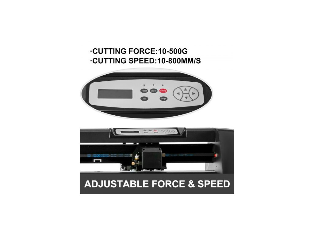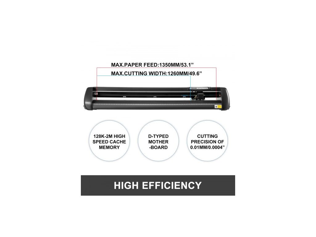Max. posuv papíru: 1350 mm (53,1"),Hrubá hmotnost: 63,4 lb (28,8 kg),Paměť: 128K-2M,Přesnost opakování: 0,0004" (0,01 mm),Max. šířka řezačky: 1260 mm (49,6"),Tlak řezačky: 10–500 g,Řezná rychlost: 10–800 mm za sekundu