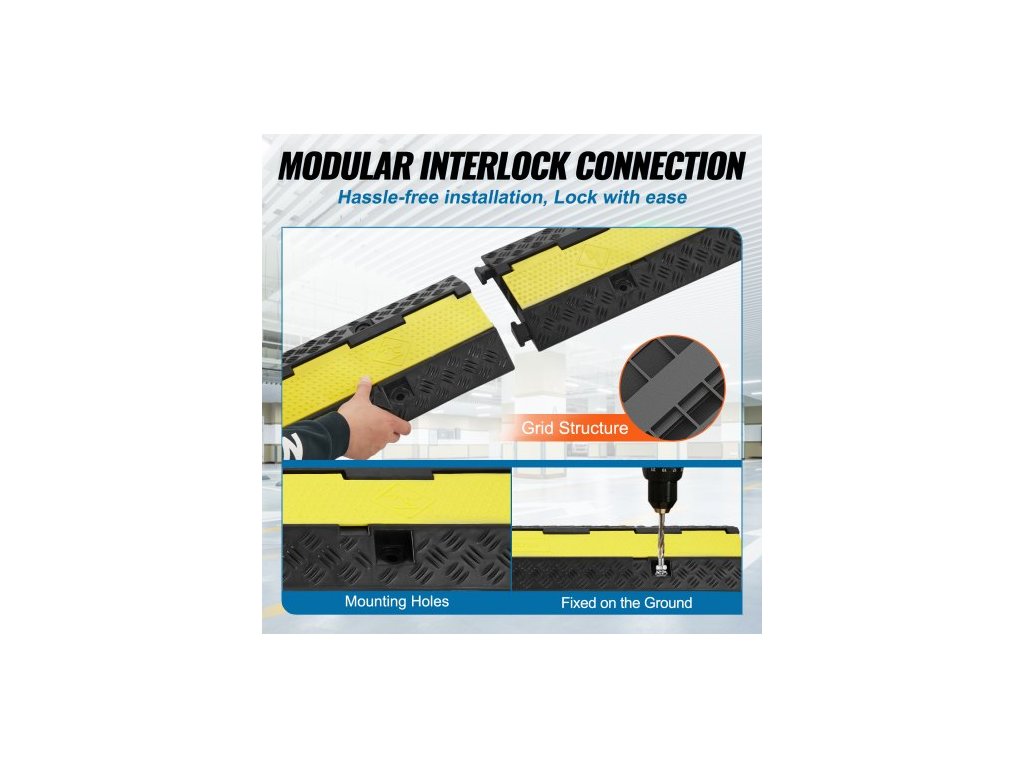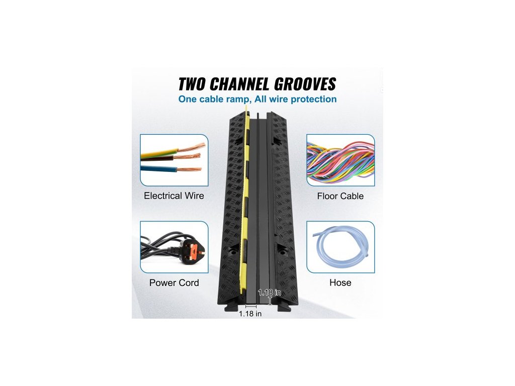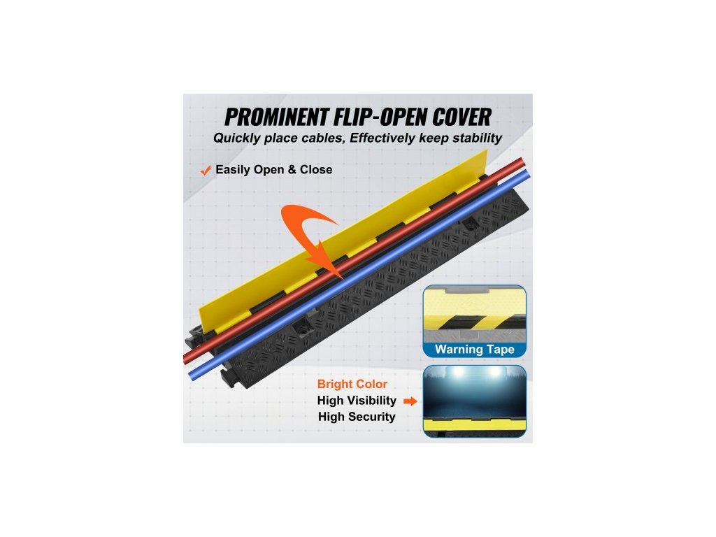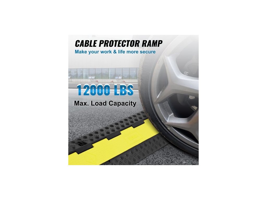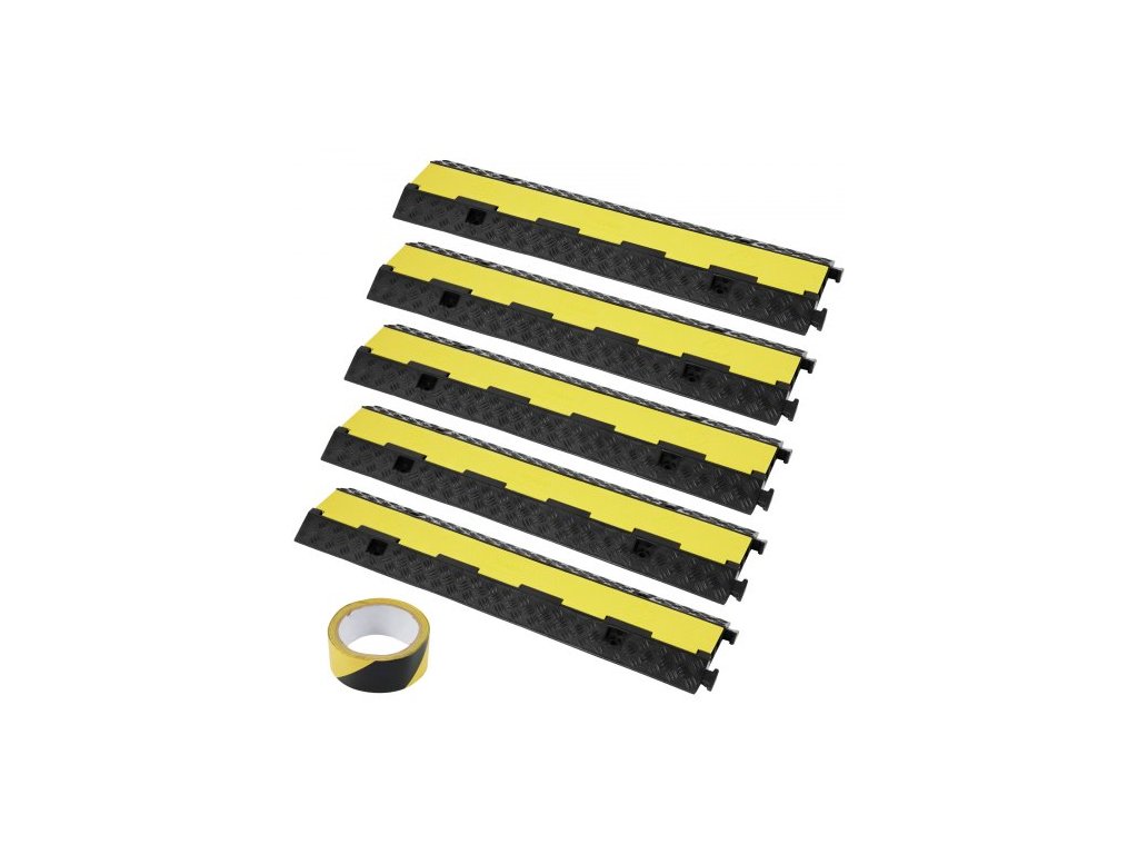 5dílná gumová ochrana kabelů, rampa 98x24x4,5 cm, 2 kanály, nosnost 12000 lbs/náprava, odolný kryt hadice, příjezdová cesta, dopravní zpomalovací prahy s otevíracím horním krytem a výstražnou páskou o délce 50 stop, pro vnitřní i venkovní použitíPrémiový PVC kryt