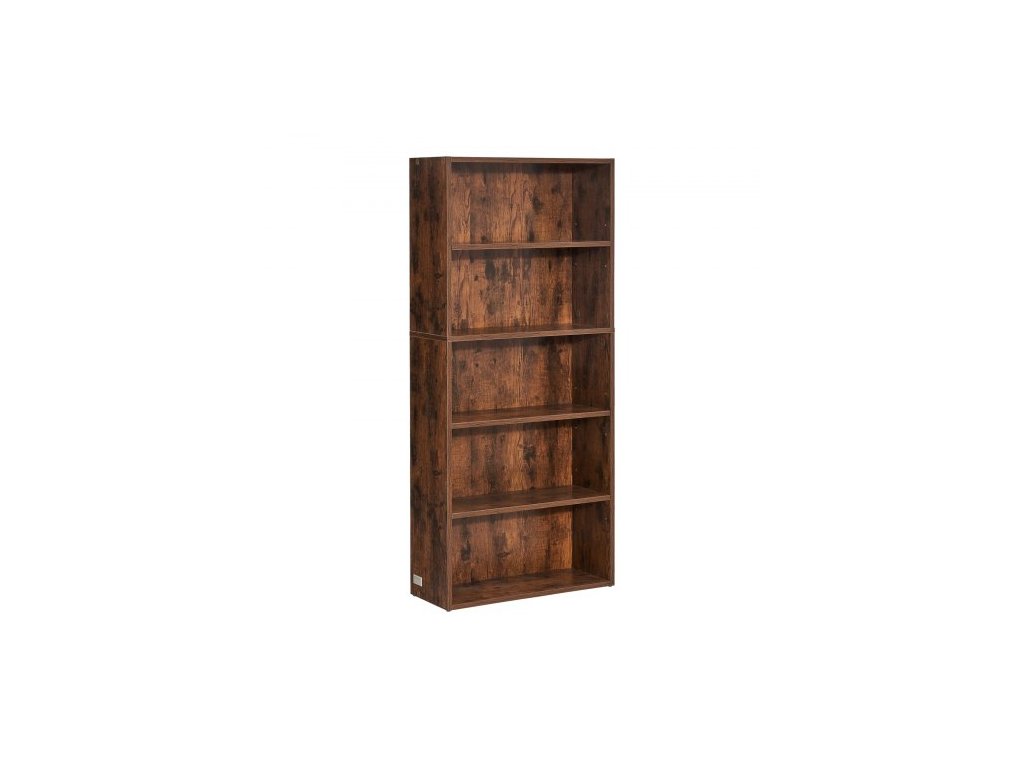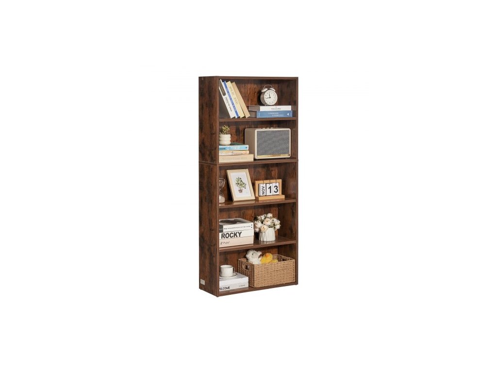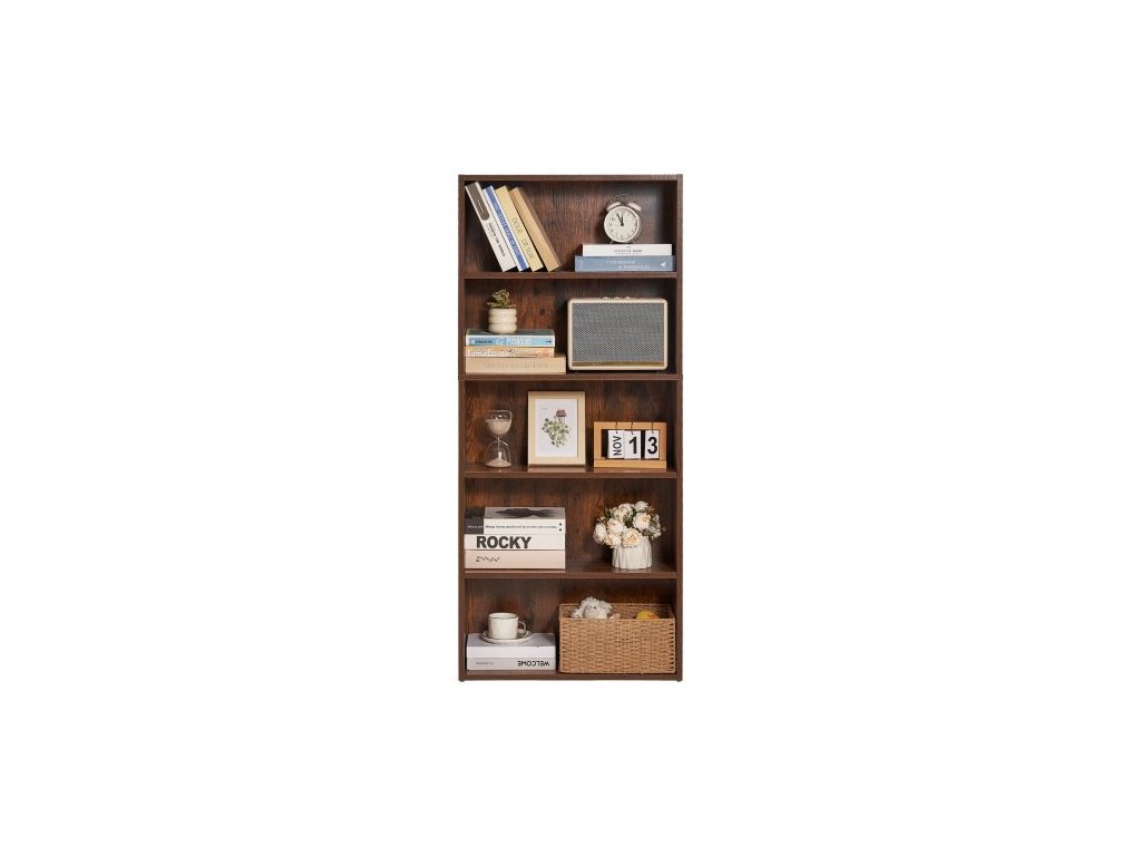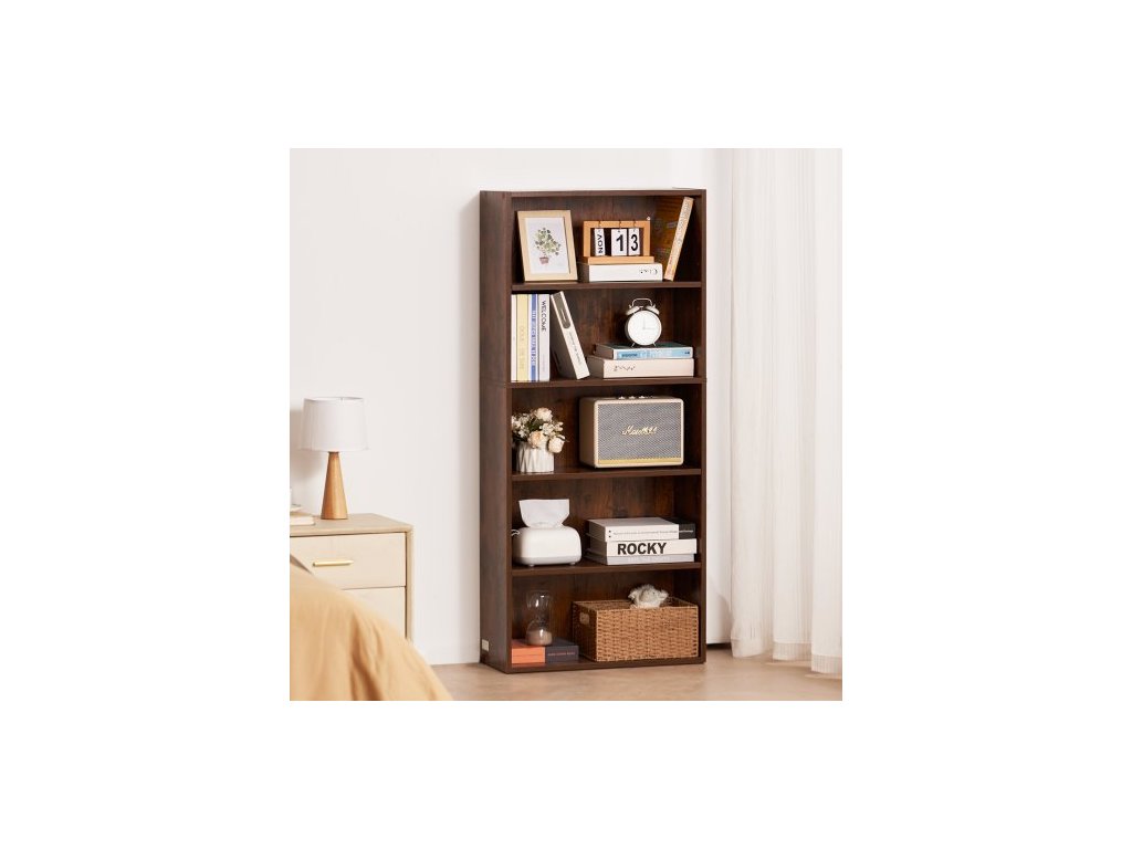 Úzká knihovna s 5 úrovněmi, dřevěná otevřená knihovna o šířce 53 palců s výškově nastavitelnou policí, volně stojící vysoká podlahová knihovna s úložným prostorem do knihovny, ložnice, obývacího pokoje, kanceláře, hnědá5úrovňová knihovna