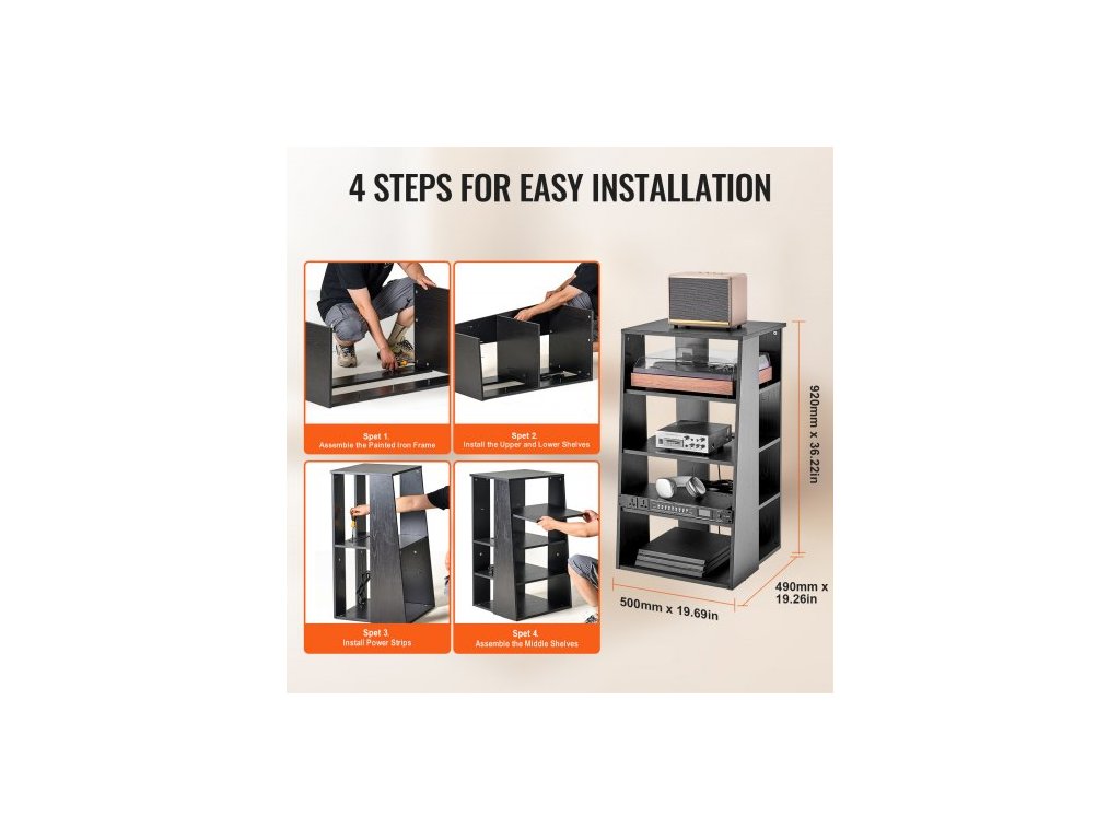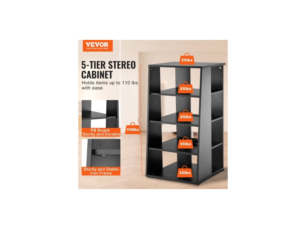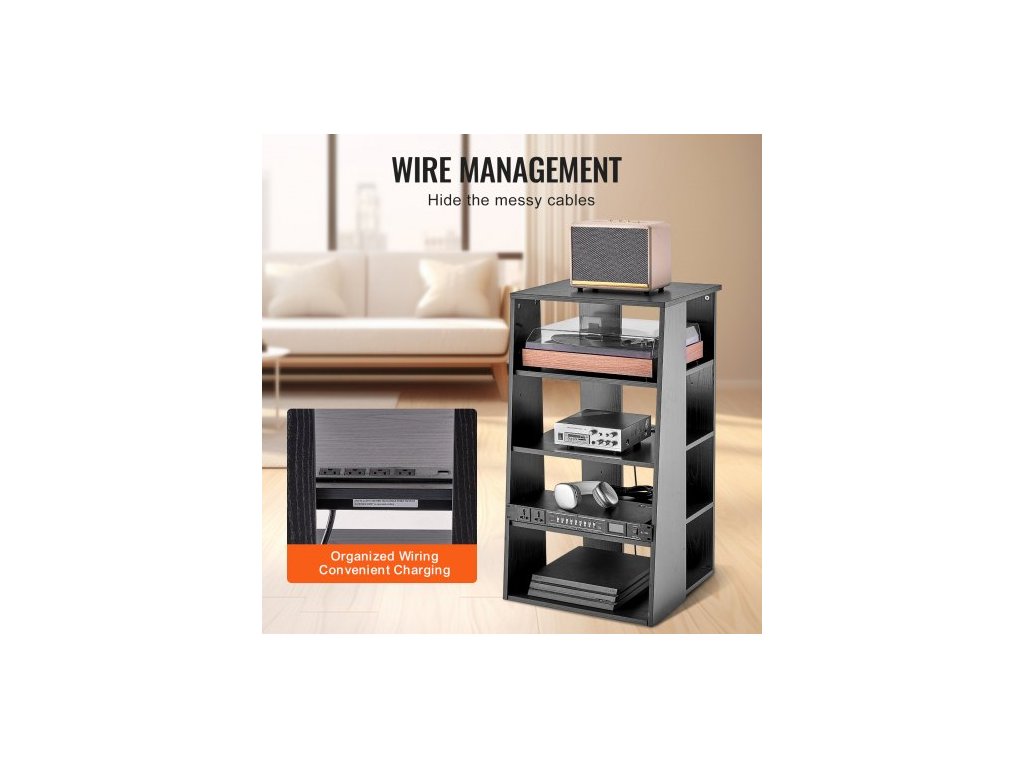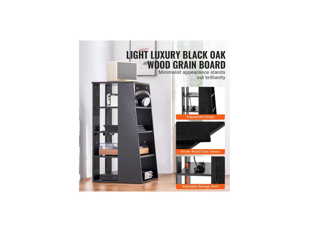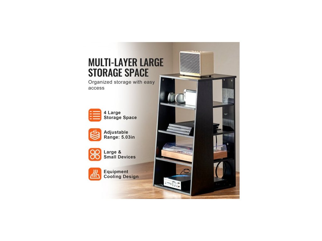 5patrový AV mediální stojan, dřevěný audio-video mediální stojan pro DVD přehrávače/kabelové boxy/herní konzole, výškově nastavitelná úložná skříňka pro hraní her, nahrávací místnost, černáOdolný nosný