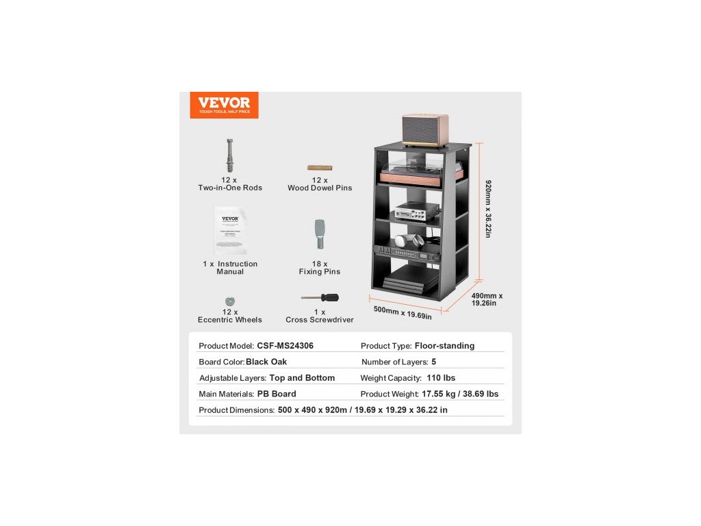 Nosnost: 45,5 kg,Typ produktu: Stojací,Počet úrovní: 5,Barva: Černý dub,Model: CSF-MS24306,Rozměry: 500 x 490 x 920 mm / 19,69 x 19,29 x 36,22 palce,Materiál: PB,Hmotnost: 17,55 kg / 38,69 lbs