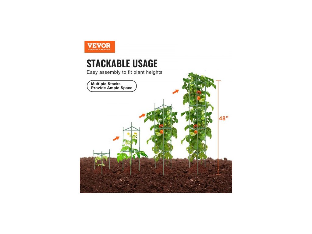 6 balení klecí na rajčata do zahrady, 48palcové kolíky na rajčata, stohovatelná klec na podporu vysokých rostlin, pro vyvýšený záhon, zeleninu, květiny a popínavé rostlinyUniverzální klec na podporu rostlin
