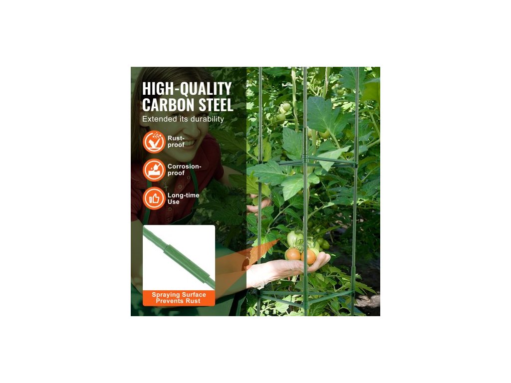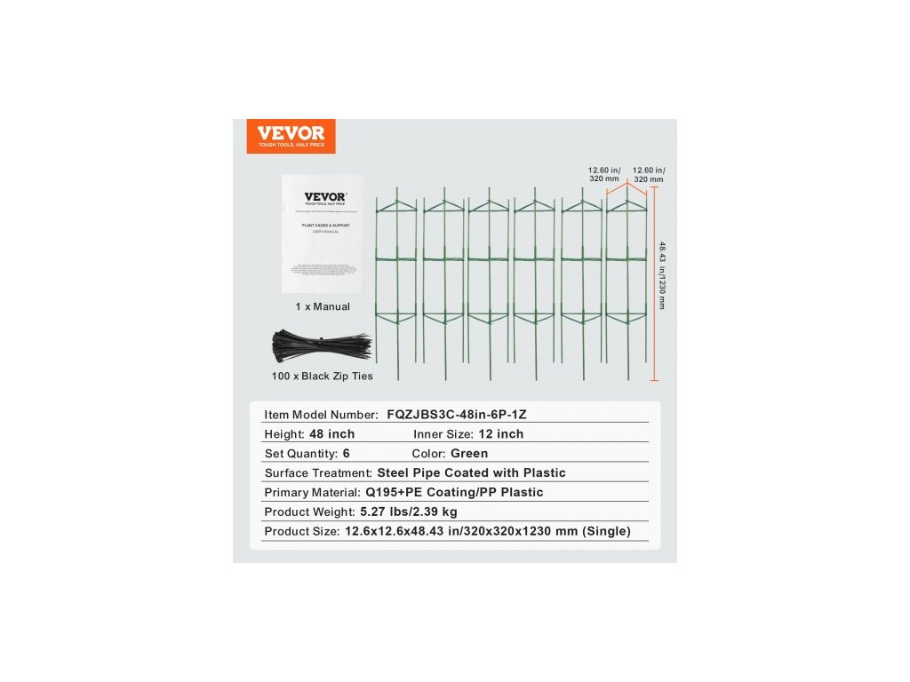 Hlavní materiál: Q195 + PE povlak/PP plast,Množství v sadě: 6,Barva: Zelená,Číslo modelu položky: FQZJBS3C-48in-6P-1Z,Povrchová úprava: Ocelová trubka potažená plastem,Hmotnost výrobku: 15,65 lbs/2,39 kg,Vnitřní rozměry: 12 palců,Výška: 48 palců,Rozměry výrobku: 12,6x12,6x48,43 palce/320x320x1230 mm (jedna)
