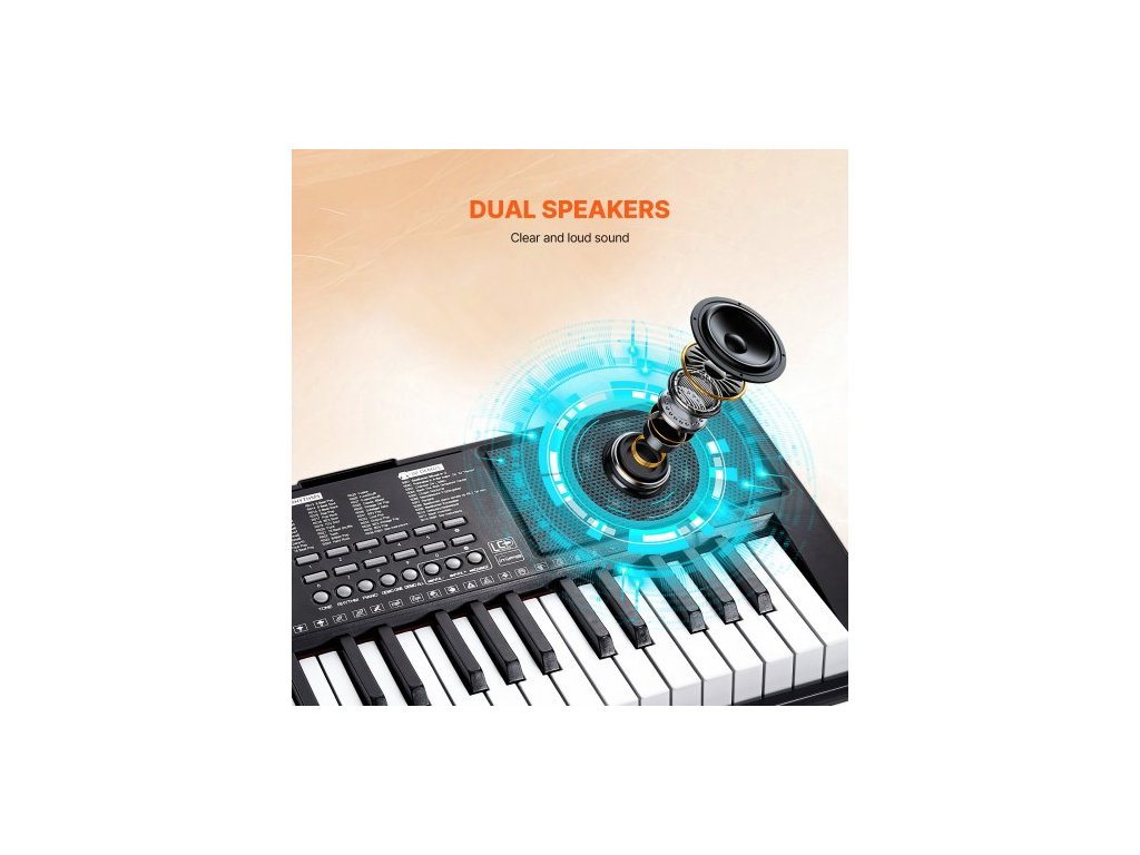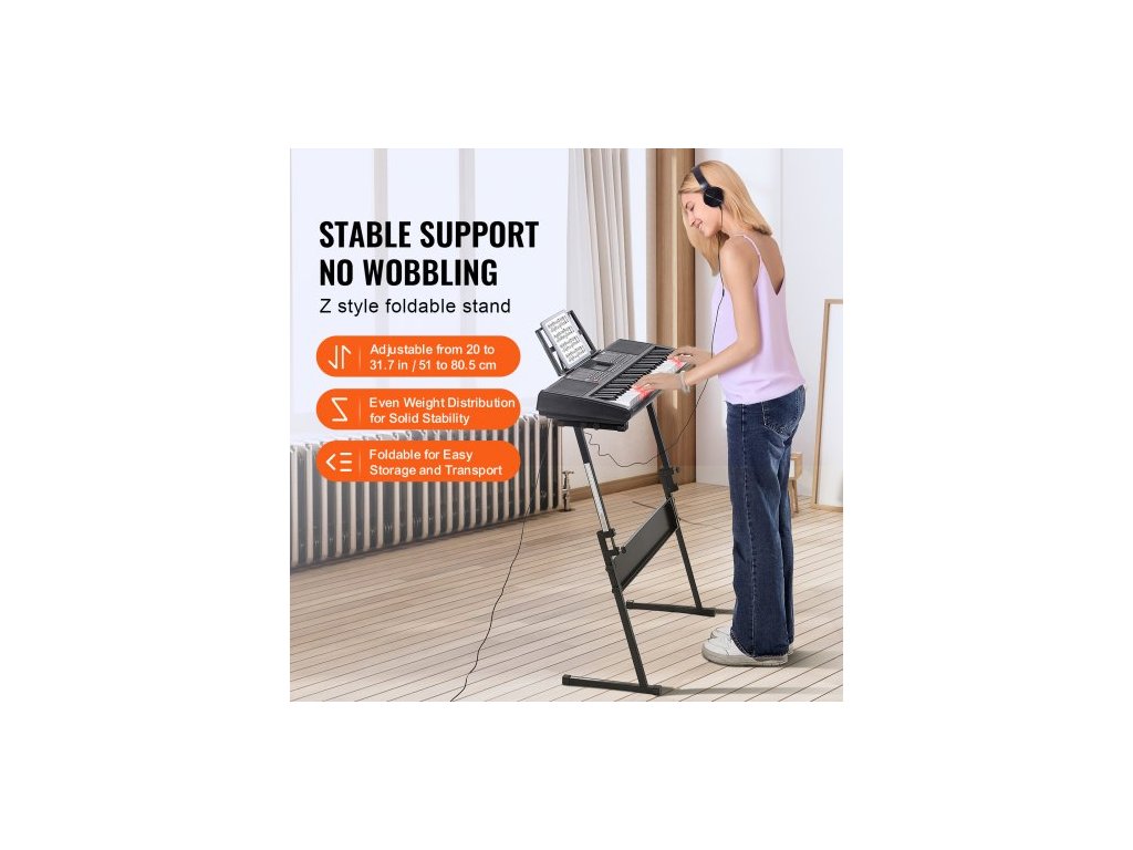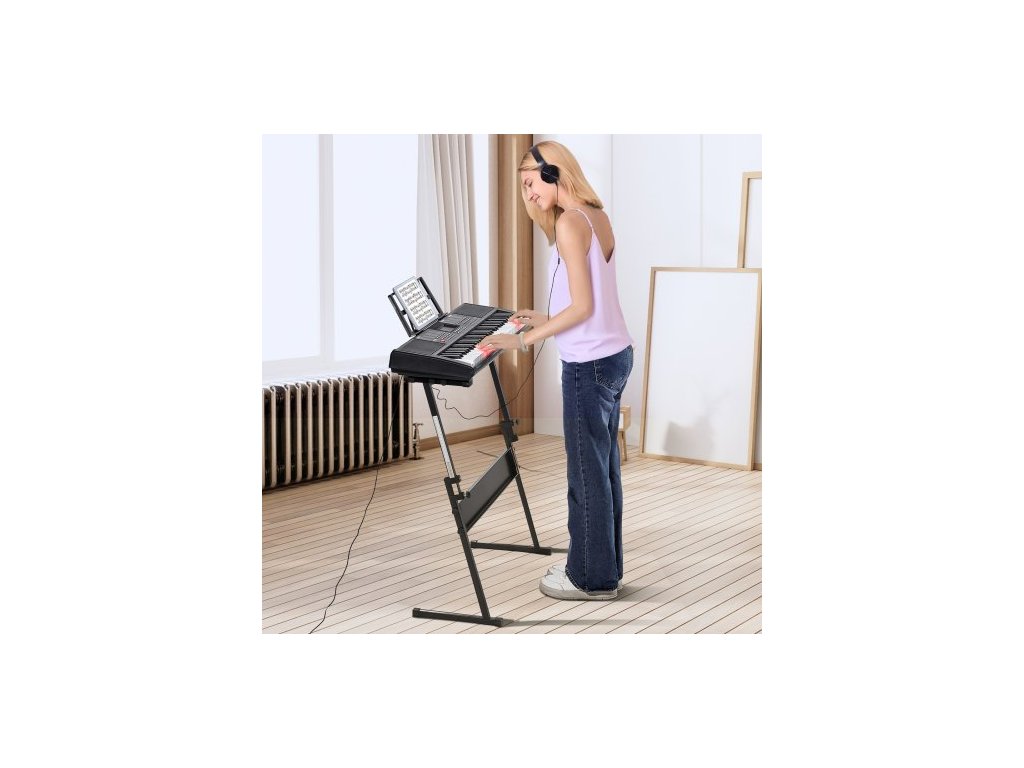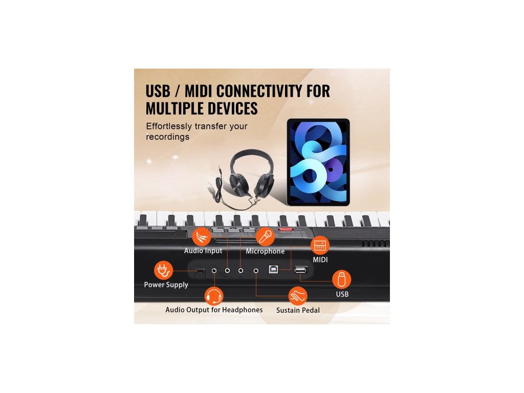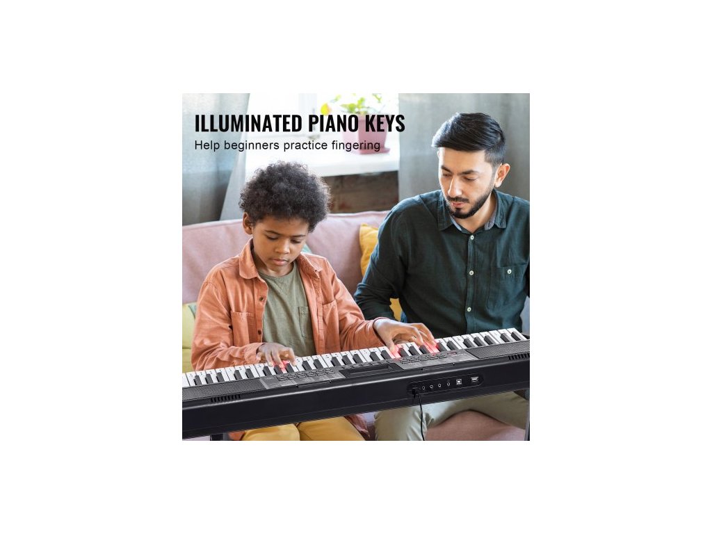 61klávesový digitální klávesový klavír, podsvícené klávesy, přenosné elektrické piano s nastavitelným stojanem, 600 tónů, 500 rytmů, vestavěné reproduktory, sluchátka se sustain pedálem, USB MIDI pro začátečníky
