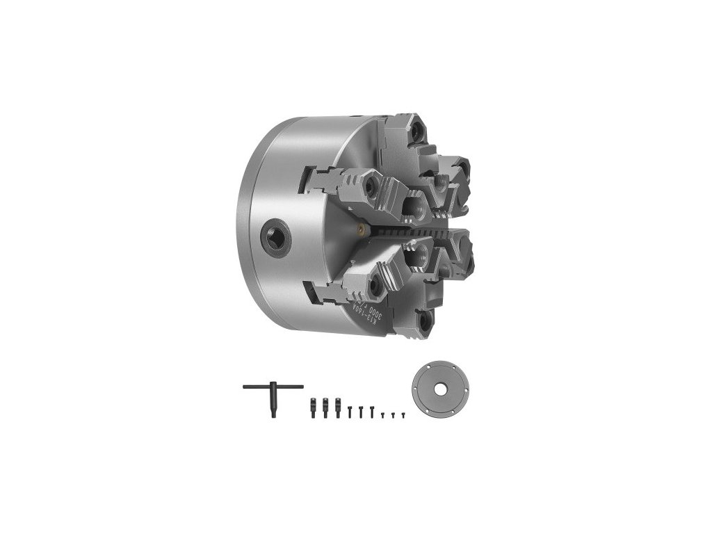 6čelisťové soustružnické sklíčidlo , 6 palců (160 mm), samostředicí sklíčidlo s opěrnou deskou s aretací vačky D1-4, upínací rozsah 0,12-5,71 palce (3-145 mm) s T-klíčem, materiál HT300, pro soustruh na dřevo a kov