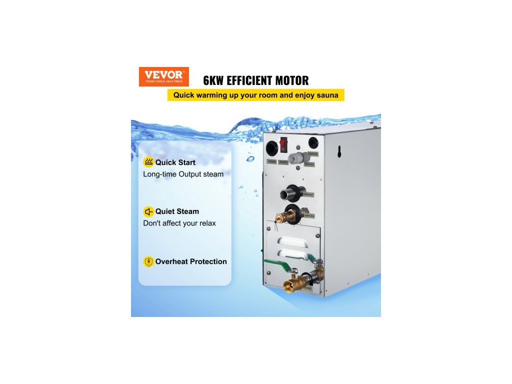 Saunový napařovač 6KW s digitálním LED displejem, parní generátor, 6KW parní generátor pro domácí lázeň s časovou regulacíVýkonný motor 6 kW