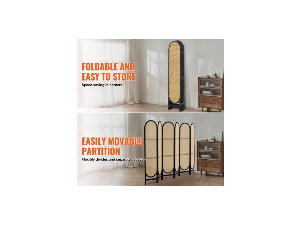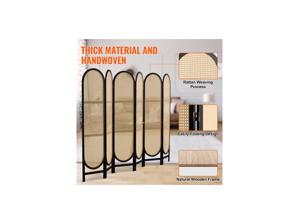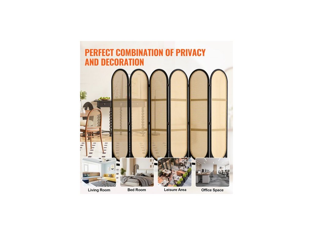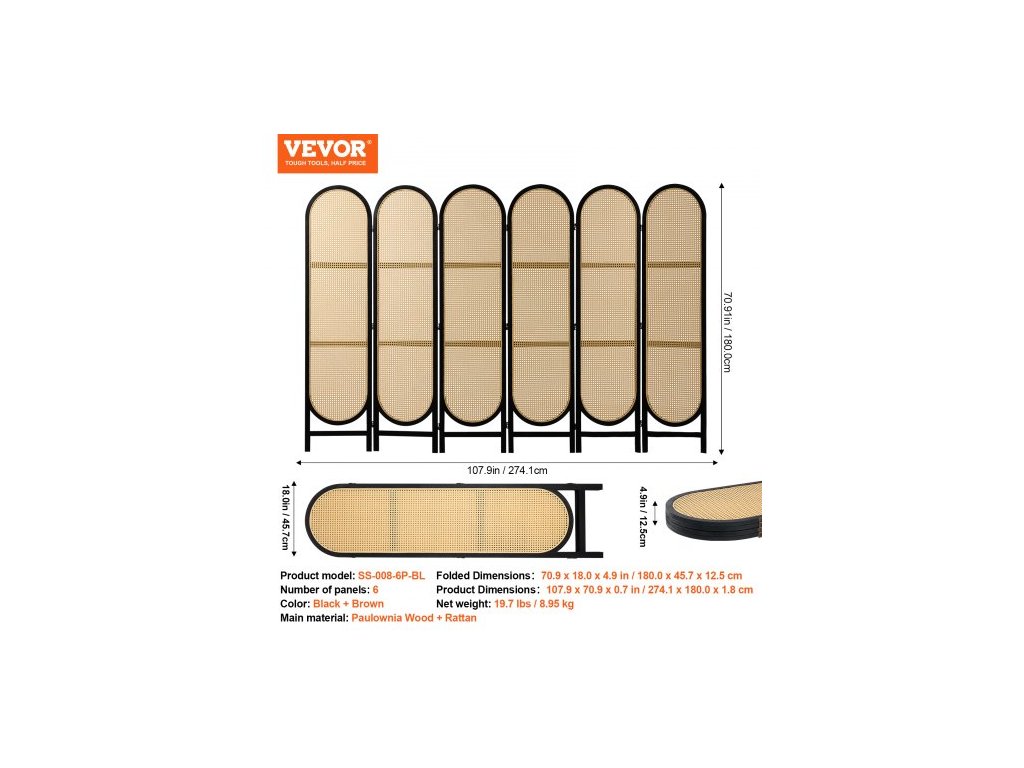 Počet panelů: 6,Barva: Černá + hnědá,Číslo modelu položky: SS-008-6P-BL,Rozměry ve složeném stavu: 70,9 x 18,0 x 4,9 palce / 1800 x 457 x 125 mm,Rozměry výrobku: 107,9 x 70,9 x 0,7 palce / 2741 x 1800 x 18 mm,Čistá hmotnost: 19,7 lbs / 8,95 kg,Hlavní Materiál: dřevo Paulownia + ratan
