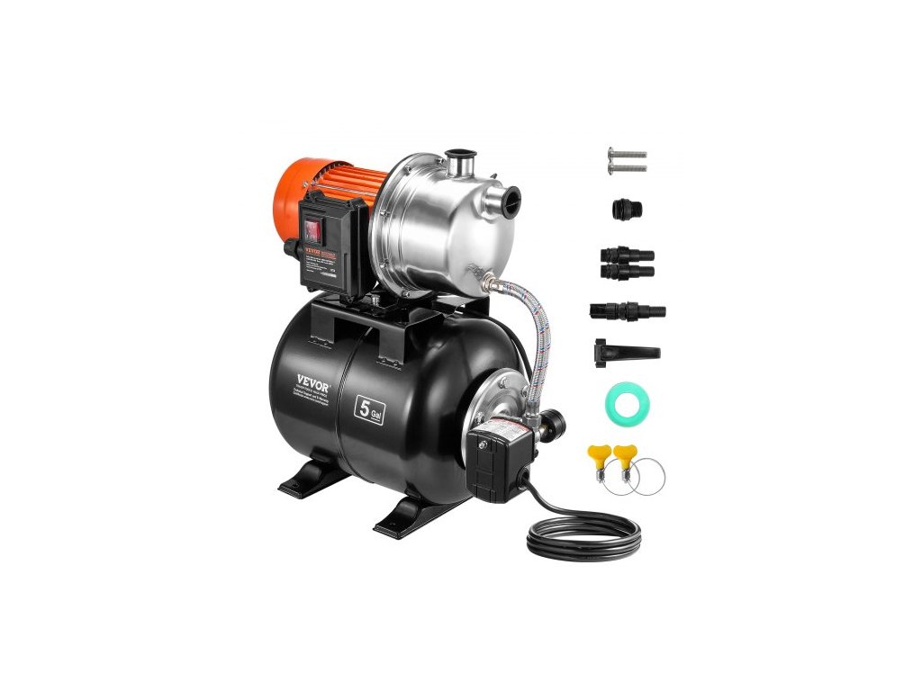 745 W (1 HP) Čerpadlo do mělké studny s tlakovou nádrží, 63 l/min (1000 GPH), Automatické zavlažovací čerpadlo s výtlakem 40 m (130 stop), tlakový spínač 1,4/2,8 baru (20/40 PSI), hlavice čerpadla z nerezové oceli 304 pro domácí zahradu a trávníkVýkonný partner pro zavlažování