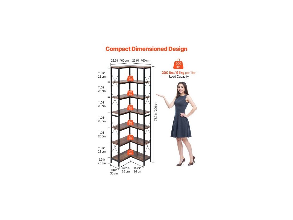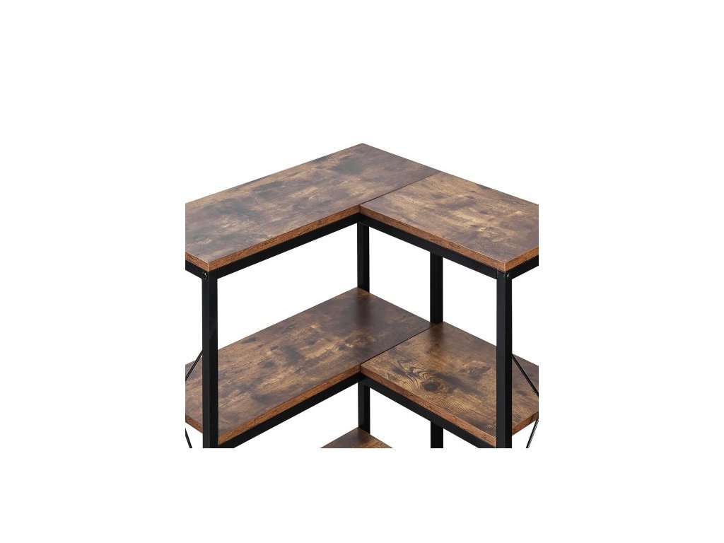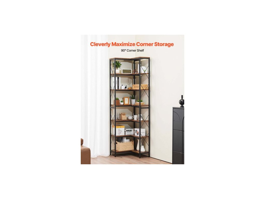 Rohová knihovna se 7 úrovněmi, vysoká rohová knihovna, velký organizér na knihovny ve tvaru L s kovovým rámem a dřevěnými policemi, oboustranný regál na knihy do ložnice, obývacího pokoje, kancelářeHladké zaoblené hrany