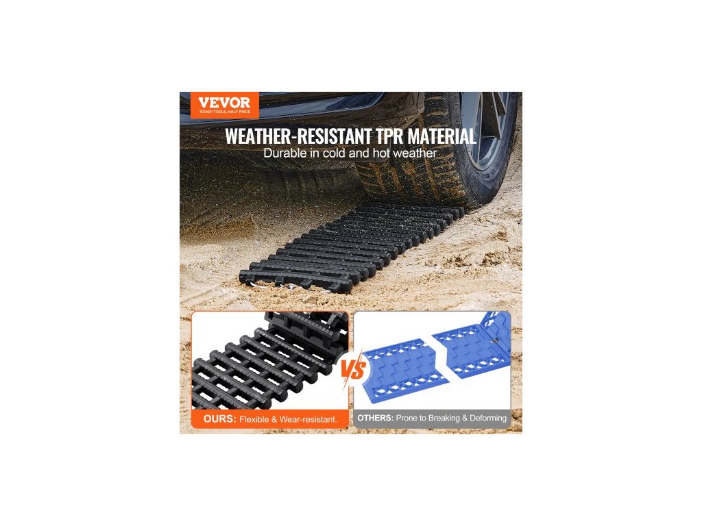 7TON Trakční desky s TPR materiálem, Odtahové desky pro terénní vozidla/auta/pickupy/SUV/karavany, Párové trakční rohože na pneumatiky na sněhu, písku, blátě a sypkém terénu, Úložné tašky, Krátké, ČernéNosnost 7 tun