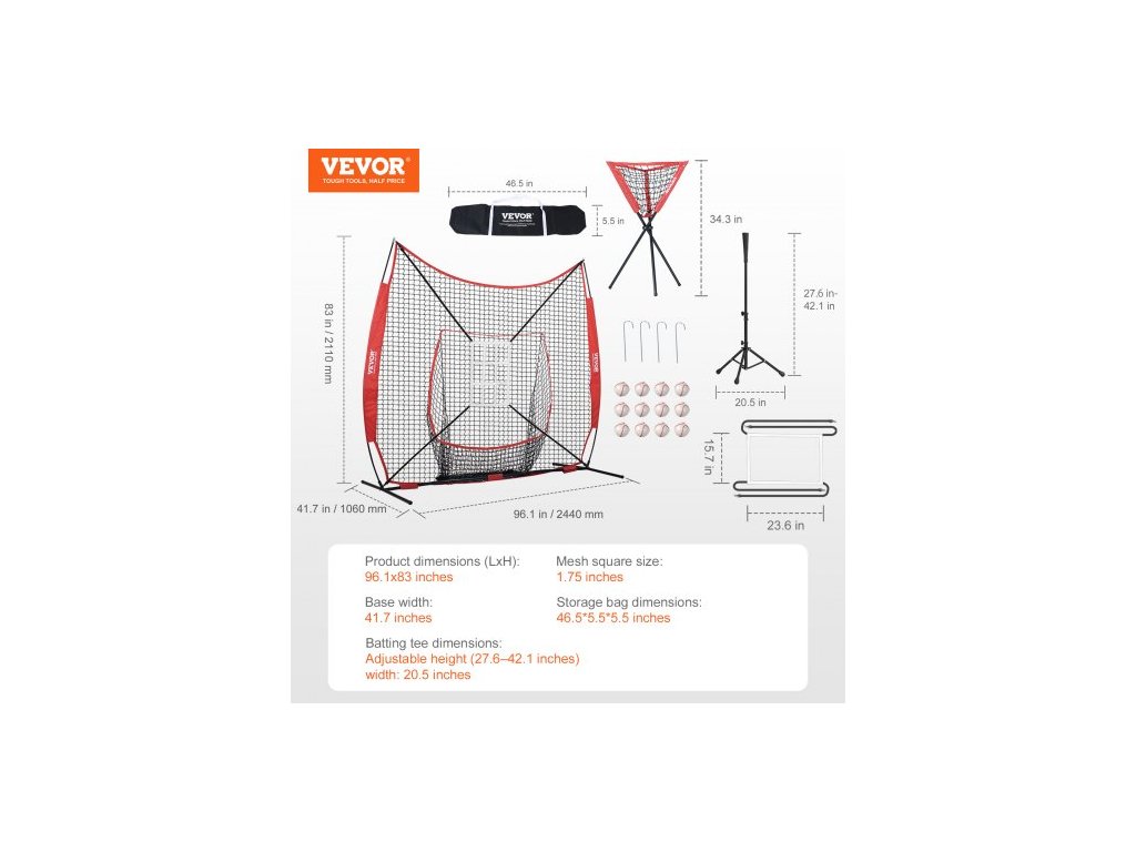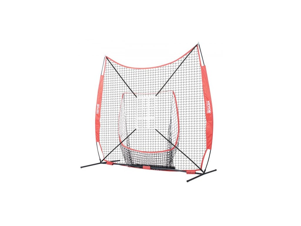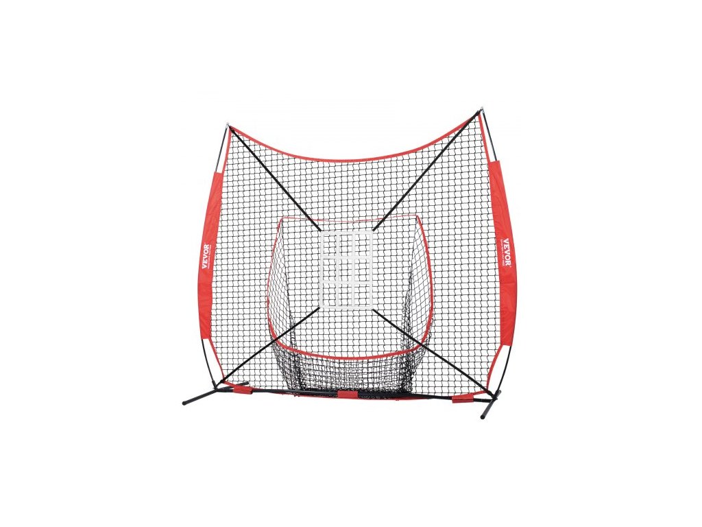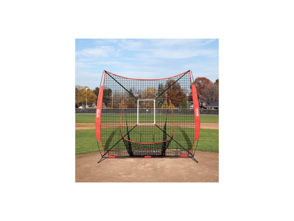 7x7 ft baseballová tréninková síť na softball, přenosná baseballová tréninková síť pro odpalování, chytání a nadhazování, vybavení pro zarážku s rámem na luk, přepravní taškou, úderovou zónou, 12 míčků, odpalištěm a sběratelem míčkůRám na terč