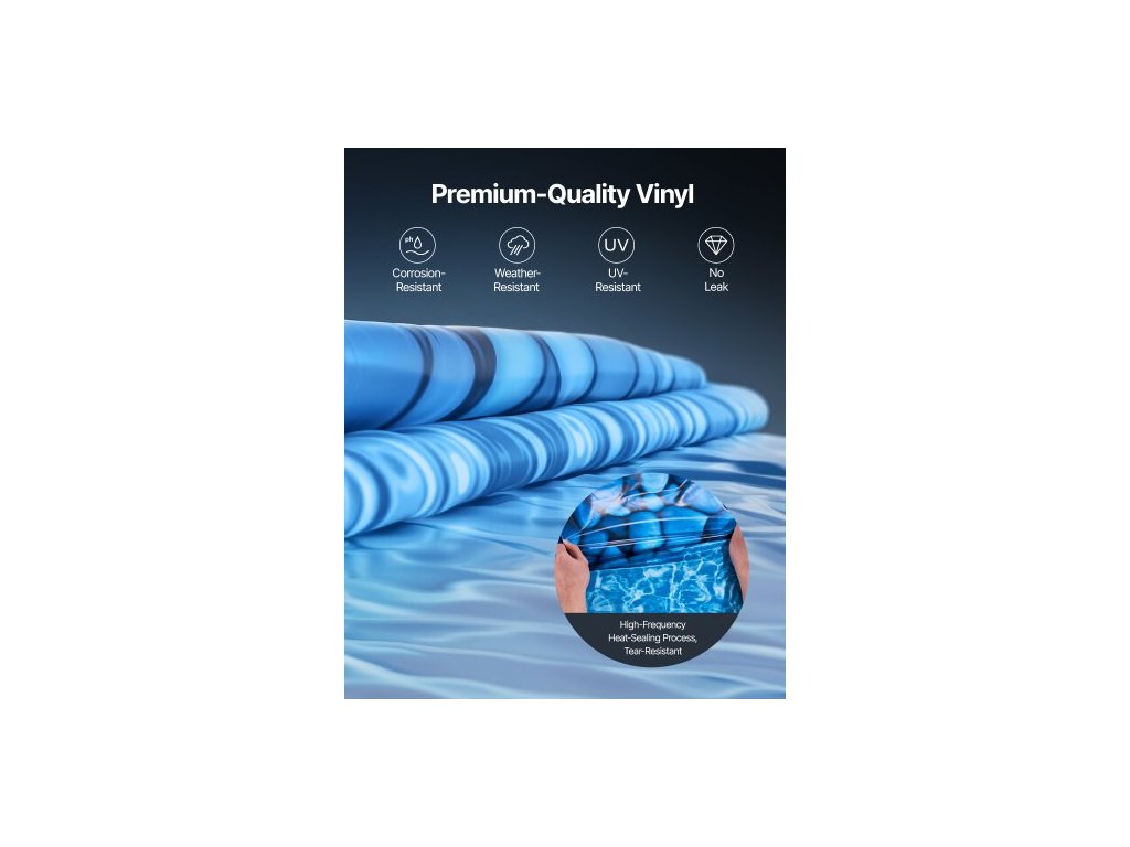 8-stopá kulatá nadzemní bazénová fólie, překrývající se bazénové fólie, standardní vinyl, výška stěny 48 až 54 palců, určená pro nadzemní bazény s ocelovými stěnami