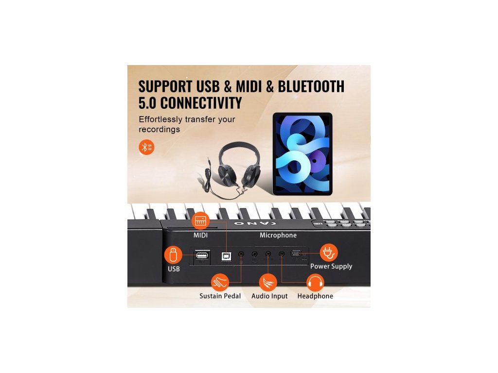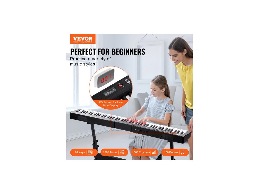 88 kláves digitální piano, polovyvážené klávesy, elektrická přenosná klávesnice v plné velikosti s 1000 tóny vestavěné reproduktory sustain pedál sluchátka, Bluetooth MIDI USB pro začátečníky