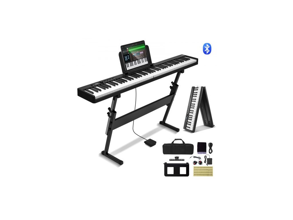 88klávesové skládací piano, Bluetooth a MIDI, přenosné elektronické digitální skládací piano se stojanem, brašna na sustain pedál, citlivé klávesy, dobíjecí pro začátečníky, teenagery a dospělé, černéPřenosný a skládací design
