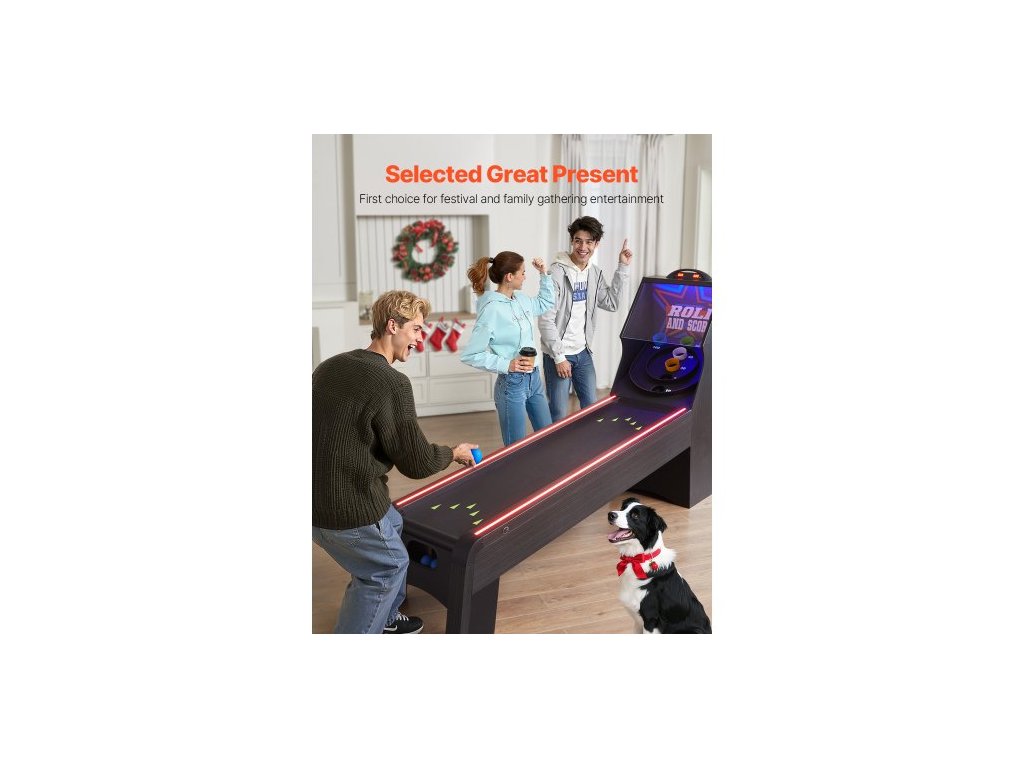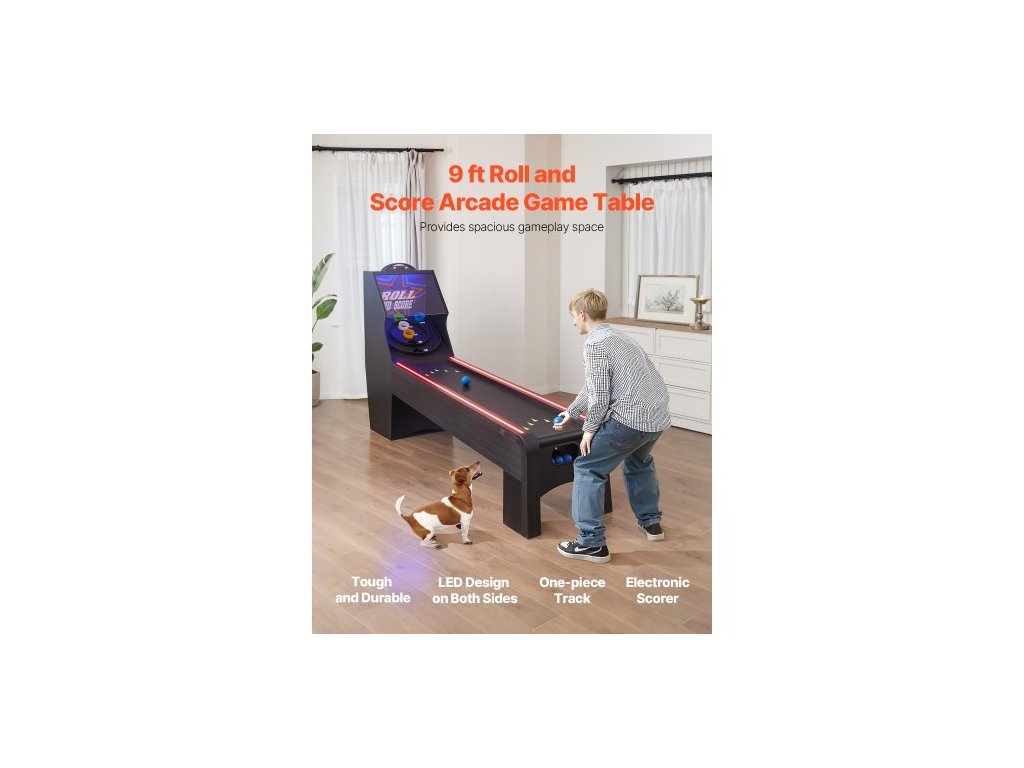 9' Roll and Score Klasický arkádový herní stůl, herní sada na skeeball s LED elektronickým bodovacím bodem, zvukem, automatickým vracením míčku pro dospělé a děti, domácí hernu, 4 míčky v ceněSkvělý dárek