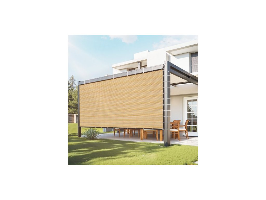 90% sluneční clona, 12 x 20 stop (3,6 x 6,1 m) na pergolu s nerezovými očkami, sluneční clona pro ochranu soukromí z materiálu HDPE 160 GSM, pro venkovní použití, terasu, zahradu a dvorek (béžová)
