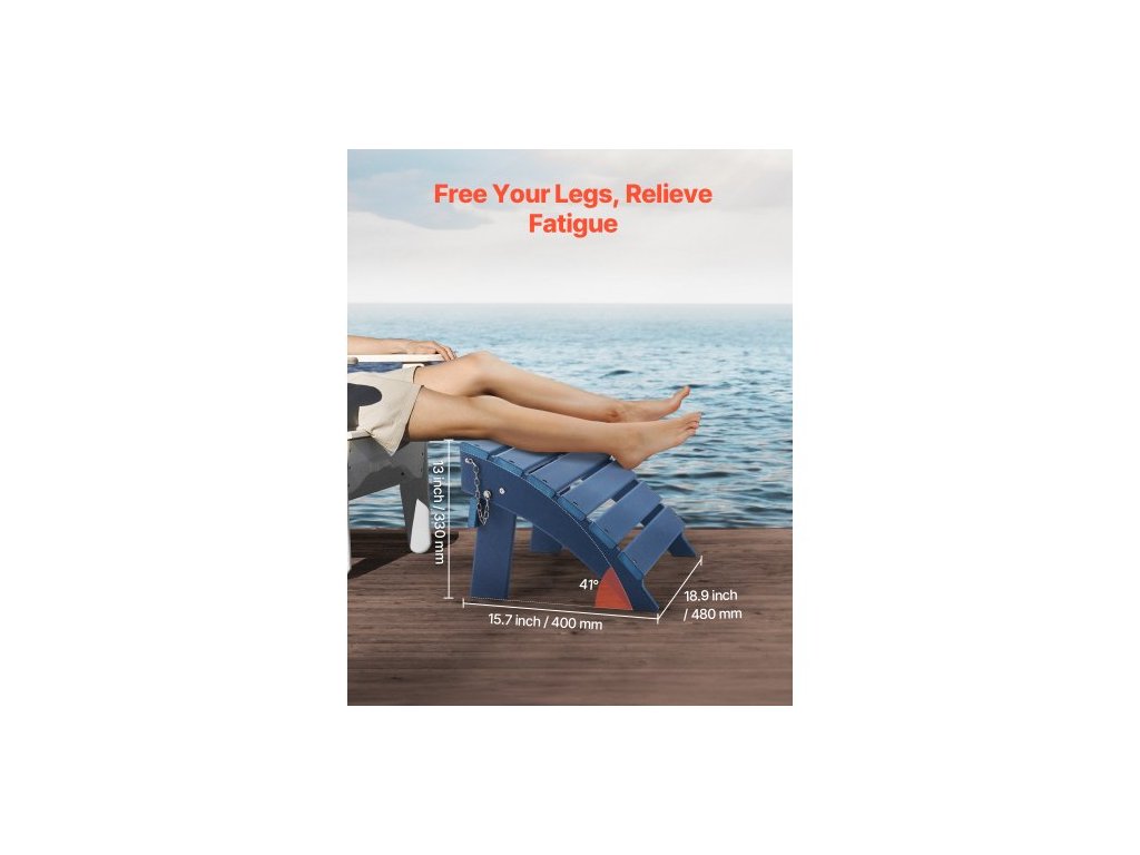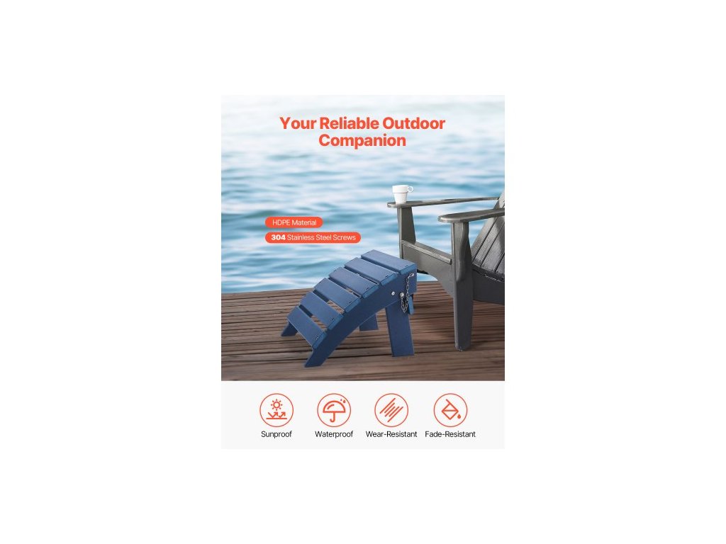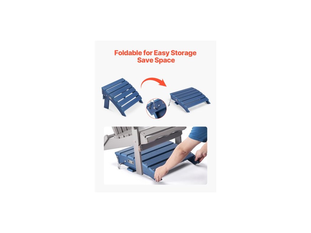 Adirondack tabure, 15,7D x 18,9Š x 13V palců, skládací plastový Adirondack tabure z HDPE, odolná opěrka nohou pro Adirondack židli, široce používaná na venkovní verandu, bazén, trávník, dvůr, modráOdolný materiál