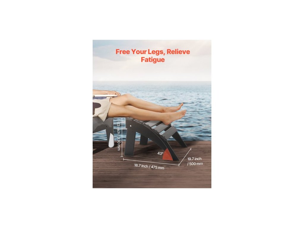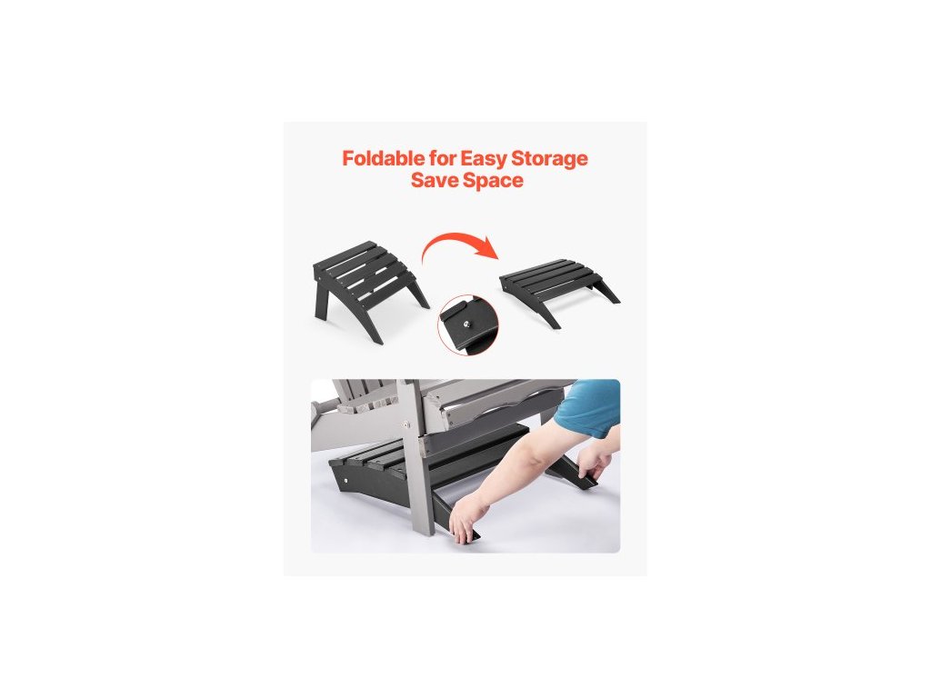 Adirondack tabure, 18,7D x 19,7Š x 13V palců, skládací plastový Adirondack tabure z HDPE, odolná opěrka nohou pro Adirondack židli, široce používaná na venkovní verandu, bazén, trávník, dvůr, černáOdolný materiál