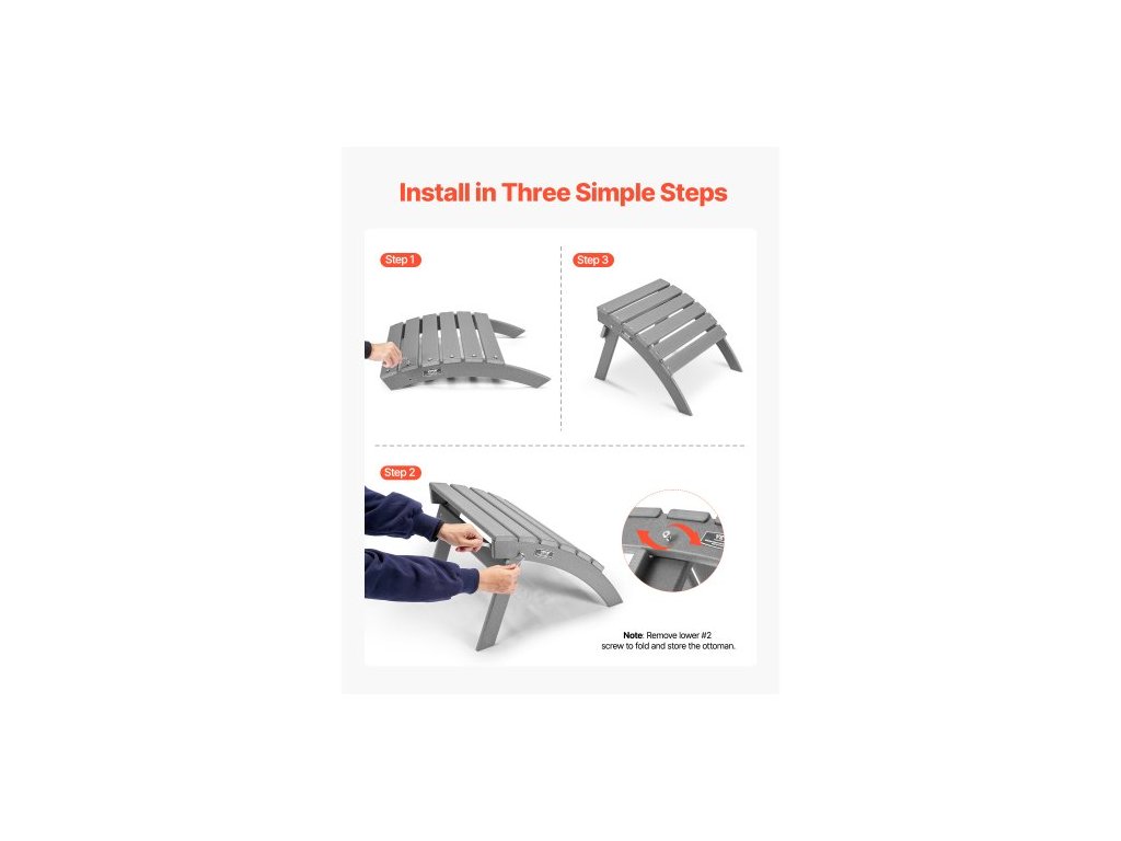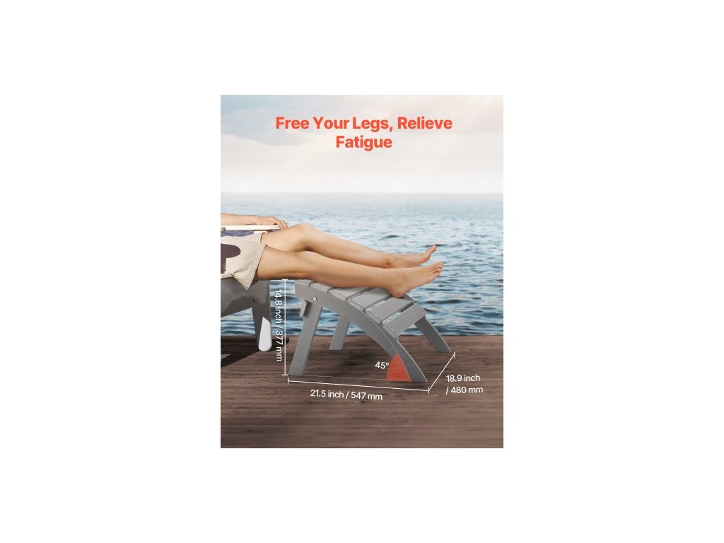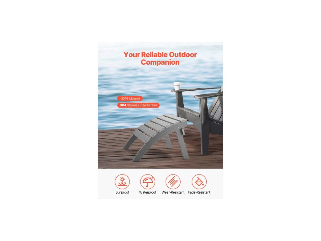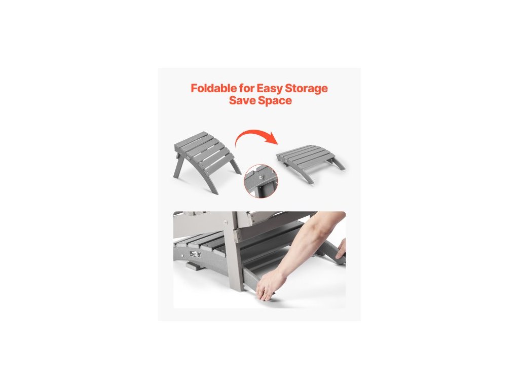 Adirondack tabure, 21,5D x 18,9Š x 14,8V palce, skládací plastový Adirondack tabure z HDPE, odolná opěrka nohou pro Adirondack židli, široce používaná na venkovní verandu, bazén, trávník, dvůr, šedáOdolný materiál