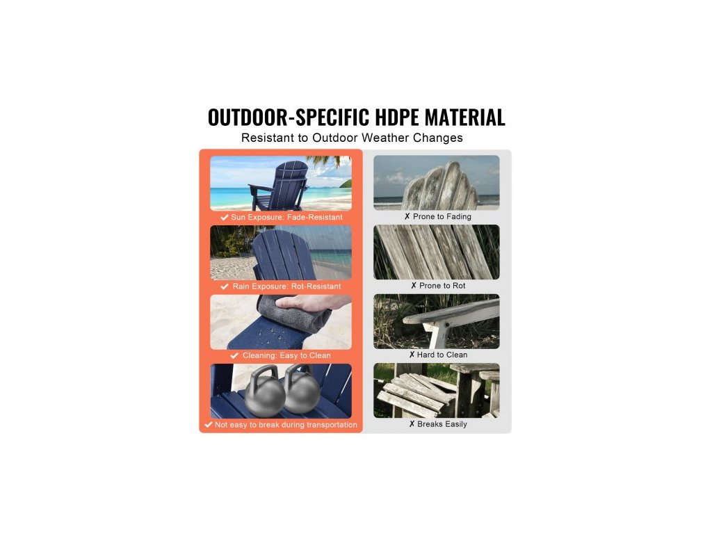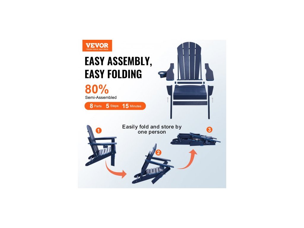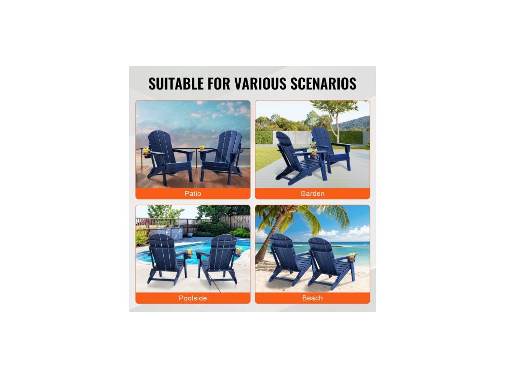Plastová židle Adirondack, sada 2 kusů, přenosná skládací židle k ohništi do každého počasí, venkovní zahradní židle Adirondack s držákem na nápoje, s relaxační ergonomickou loketní opěrkou, do zahrady, na dvůr, tmavě modráPlastová židle Adirondack