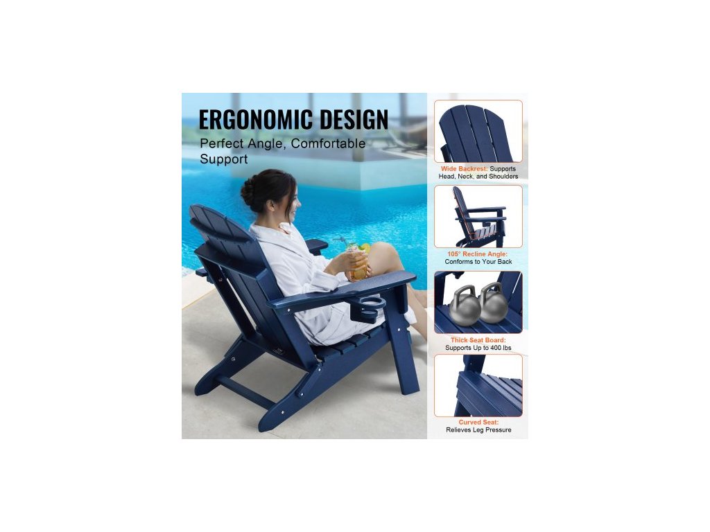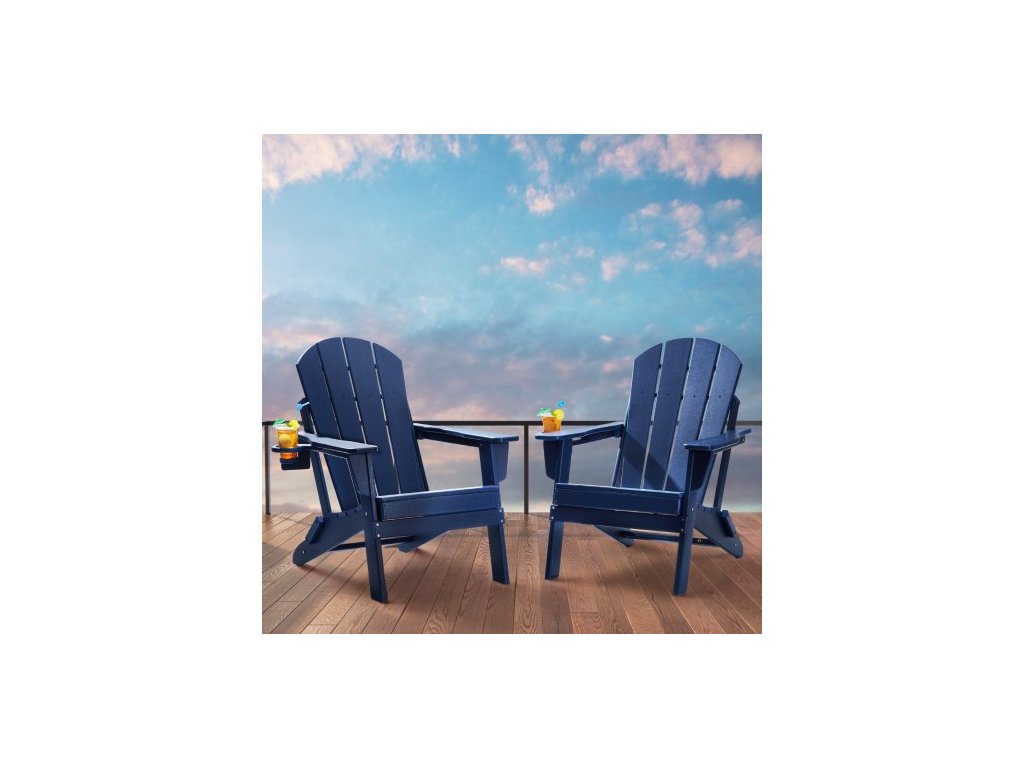 Adirondack židle plastová, sada 2 kusů, přenosná skládací židle k ohništi do každého počasí, venkovní Adirondack židle na terasu s držákem na nápoje, s relaxační ergonomickou opěrkou rukou, do zahrady, tmavě modrá na dvůr