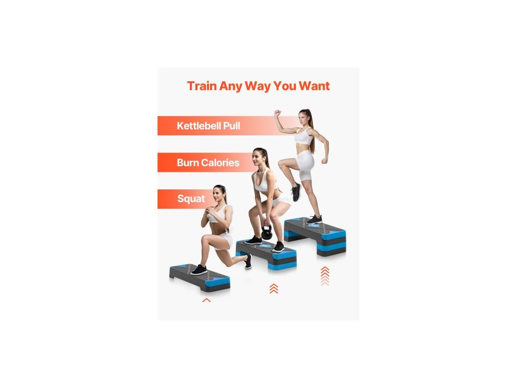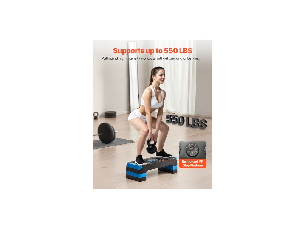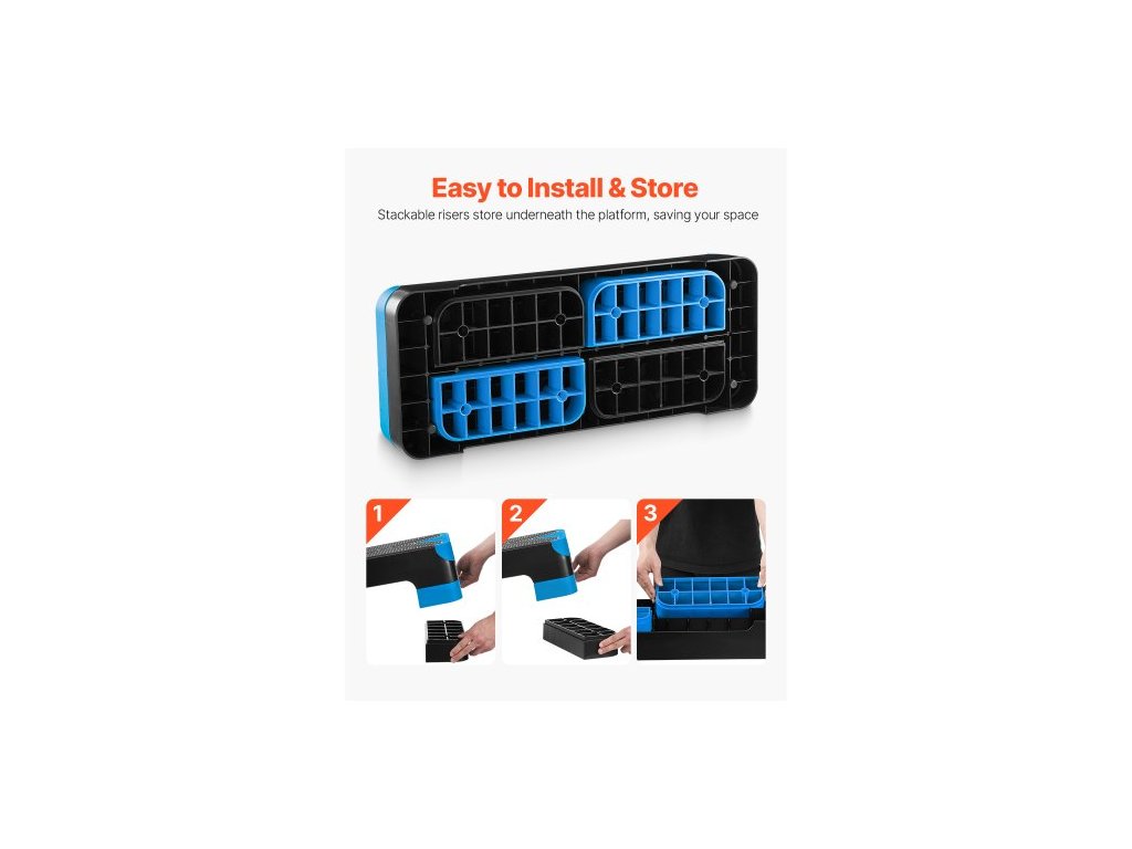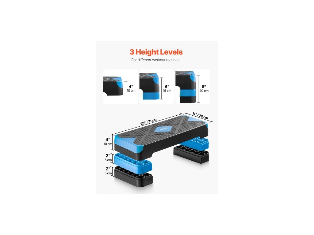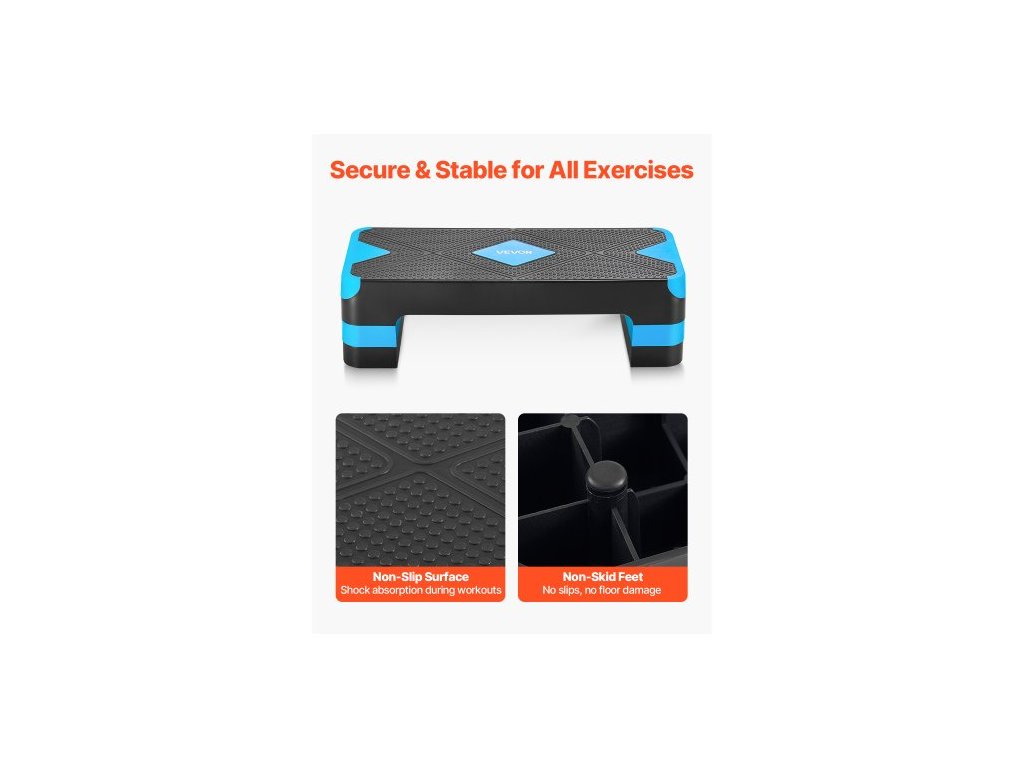 Aerobní stepper, 28palcový tréninkový aerobní stepper, výškově nastavitelná fitness stepperová plošina se 4 podpěrami, protiskluzová lavice pro domácí posilování, kardio, sílu, modráNosnost 550 liber