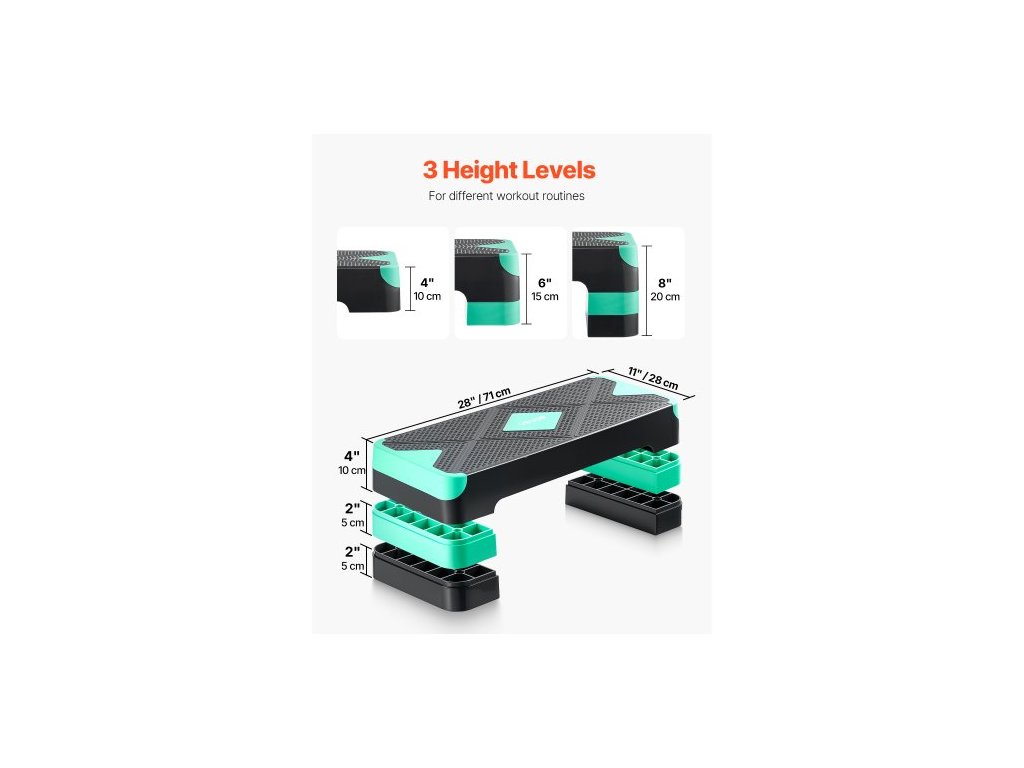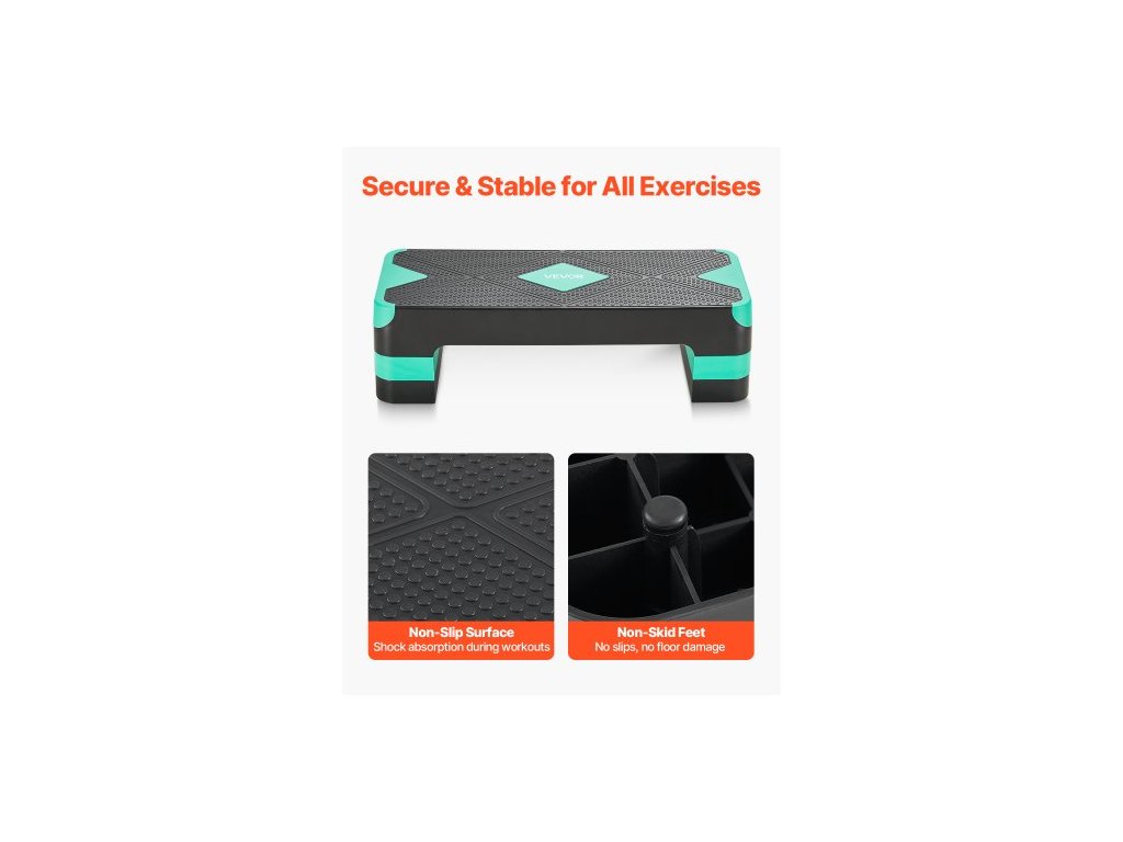 Aerobní stepper, 28palcový tréninkový aerobní stepper, výškově nastavitelná fitness stepperová plošina se 4 podpěrami, protiskluzová lavice pro domácí posilování, kardio, posilování, zelenáNosnost 550 liber