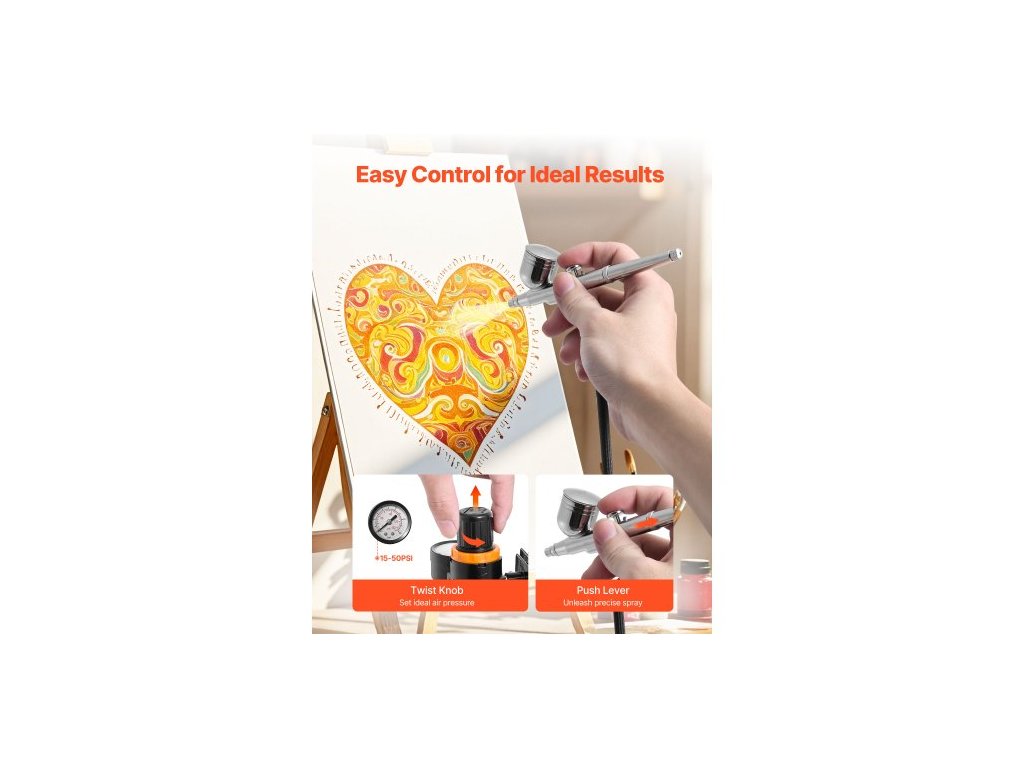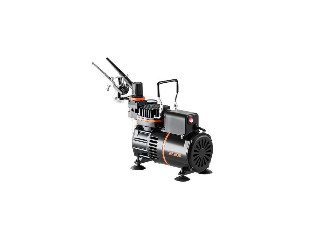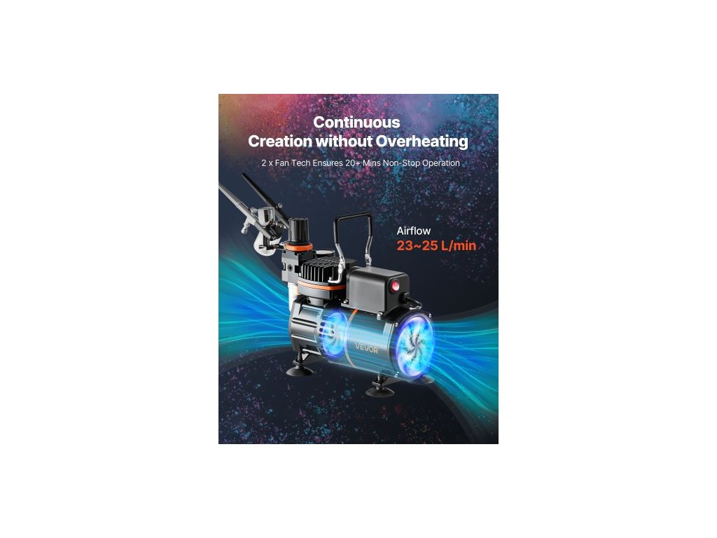 Airbrush sada, 1/6 HP, Sada airbrush s kompresorem, 3 profesionální airbrush s dvojitou funkcí a 3 tryskami, hadice, akrylová barva, 2 ventilátory, nízká hlučnost, pro zdobení dortů, malování modelů, zdobení nehtůProtiskluzová základna pro stabilní použití